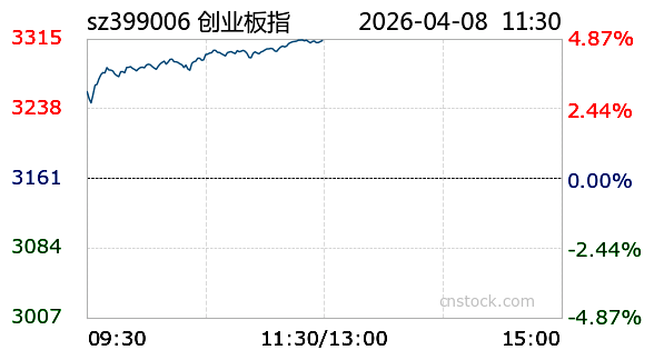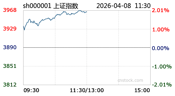 AI小壹4月8日讯 沪市小幅上涨,最高触及3967.97点,最低下探3926.25点,振幅1.92%。截至今日11:30收盘,上证指数报3964.72点,涨幅1.92%,成交额6801.02亿元,成交量4.07亿;深证成指报13919.13点,最高13919.62点,最低13694.91点,大涨3.87%,成交额8626.03亿元,成交量4.78亿;创业板报3312.71点,最高3313.69点,最低3243.78点,暴涨4.81%,成交额4147.05亿元,成交量1.48亿。