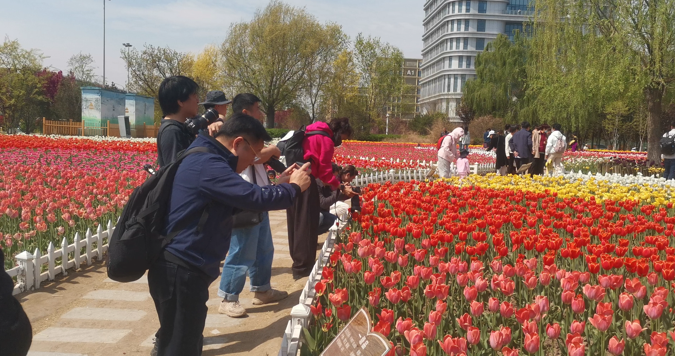 拍摄过程中,媒体嘉宾们不时驻足观赏,手中的相机、手机快门声此起彼伏,纷纷用镜头定格这片花海的惊艳与灵动。不少嘉宾们表示,秦皇河的郁金香花海令人印象深刻,既能看到自然之美,也能感受到城市的精致与活力。