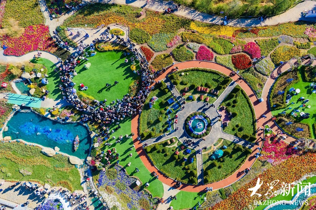 步入云崖花园,明黄、绯红、纯白的鲜花次第绽放,水雾缭绕间,花精灵NPC穿梭其中,游客们或驻足拍照,或漫步赏花,沉浸式感受着春日山野的芳菲。