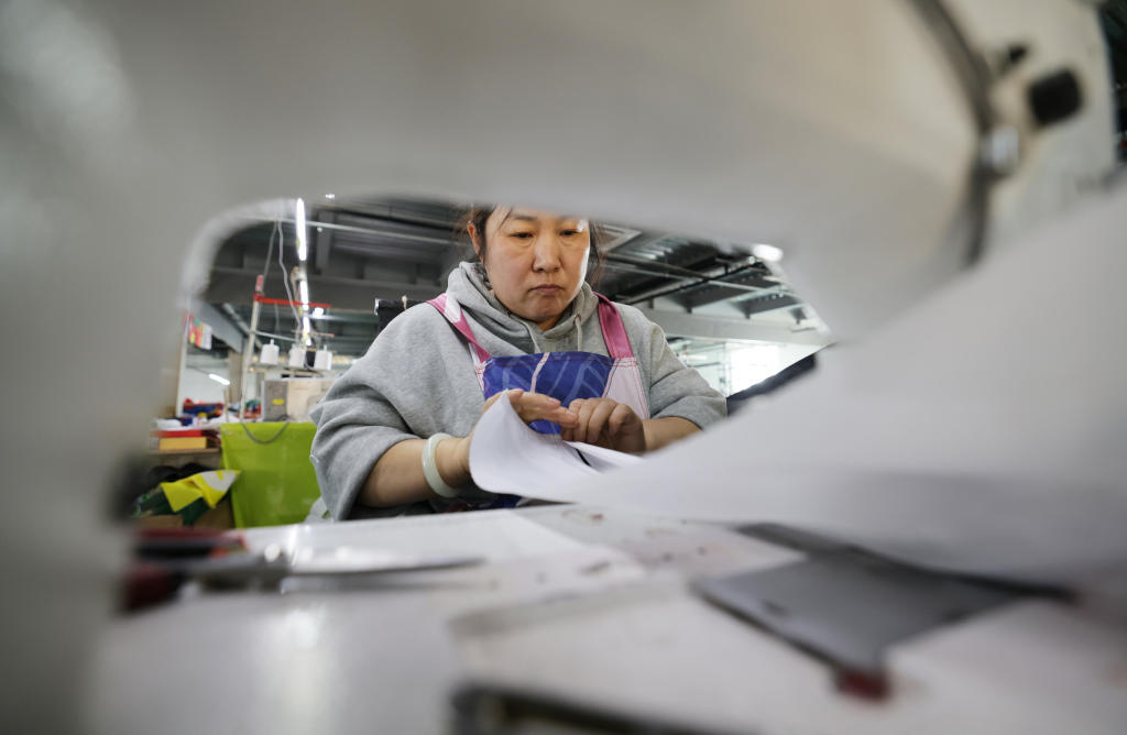记者在缝纫车间看到,每台缝纫机旁都张贴着一张对照表,清晰印制着各参赛国国旗的标准图案,为工人操作提供精准参照。工人们将国旗旁的拉链精心缝制完毕后,统一装车转运至包装流水线,再由工作人员按国家标签,将每一面国旗精准装入对应包装袋中。在车间一侧的工作台上,肖常爱正仔细查验随手从包装箱中取出的德国、西班牙两国国旗,从尺寸规格、色彩饱和度到花纹细节,逐一核对、严格把关,不仅要符合行业标准,更要力求超越标准,充分彰显企业的工艺水准。
