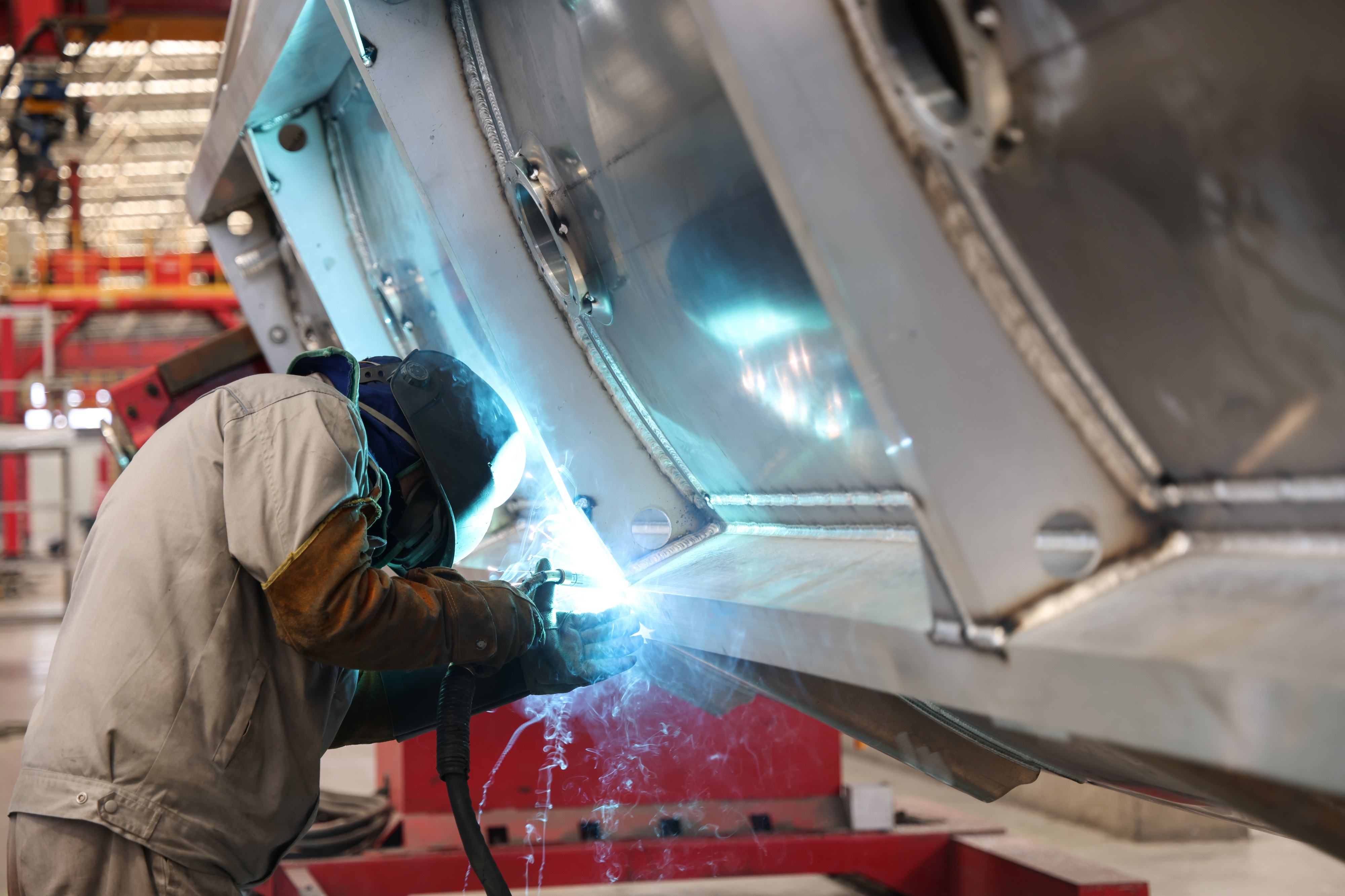 4月7日,在位于邹平市的山东三星机械制造有限公司生产车间内,工人正在生产线上有序开展焊接作业。近年来,当地立足区位优势,深耕新材料、装备制造等主导产业,持续优化铝产业结构,扎实做好延链、补链、强链“文章”。聚焦高性能铝合金、汽车轻量化铝材等重点方向,不断推动铝制造业向高端化、智能化、绿色化稳步迈进。(大众新闻记者韩凯通讯员霍广)