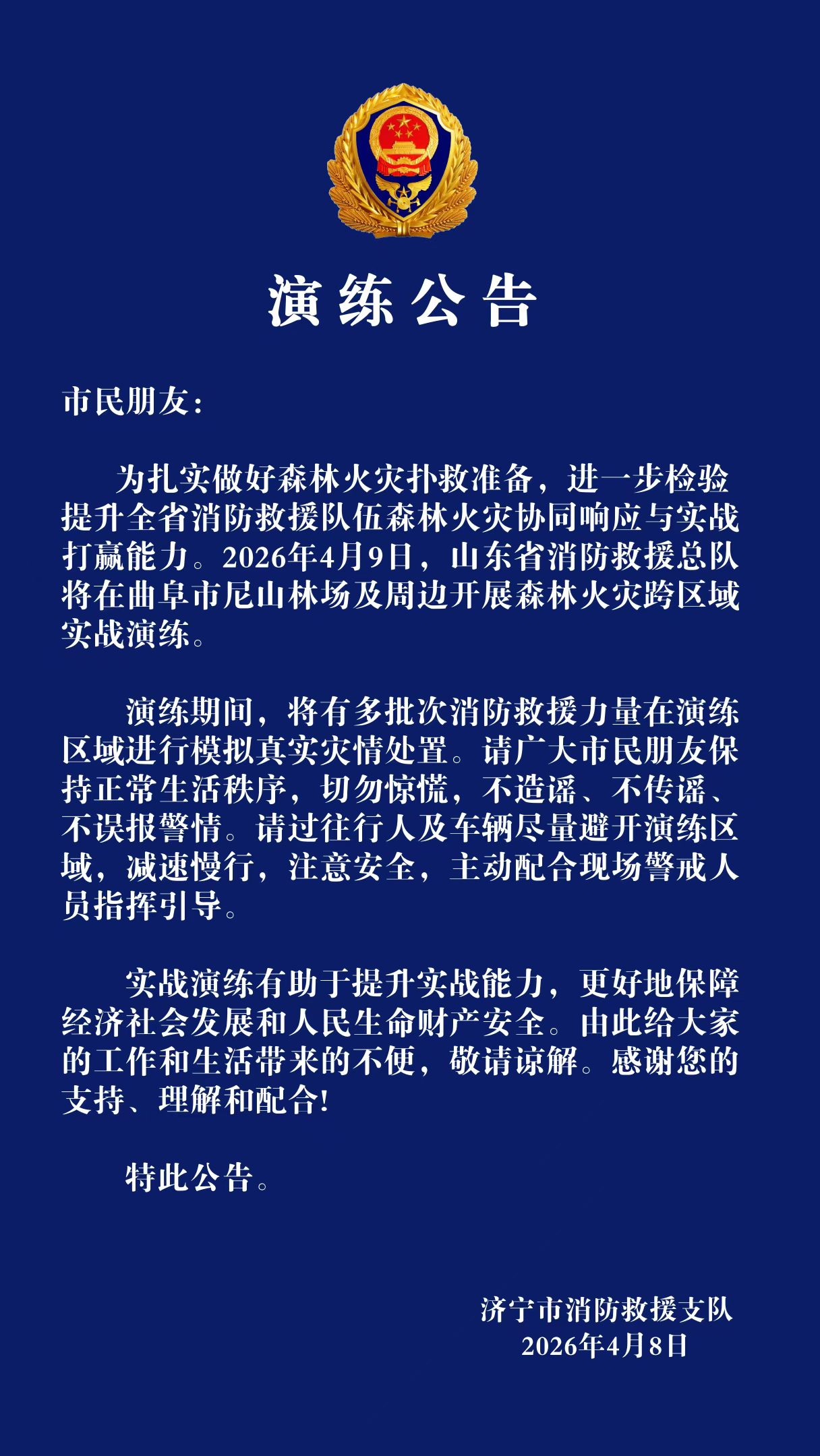 切勿惊慌!济宁消防发布实战演练公告
