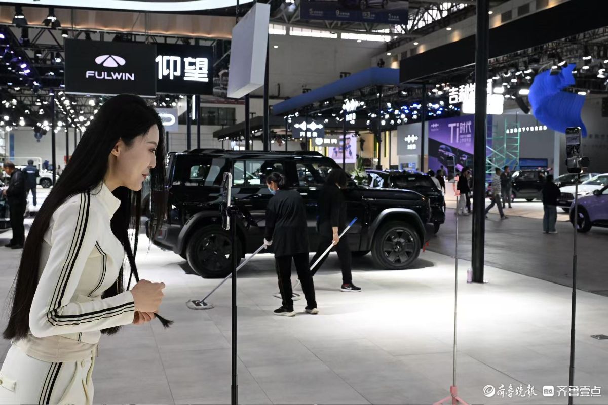 备受瞩目的2026齐鲁春季车展(第五十三届齐鲁汽车展览交易会)即将盛大启幕,4月8日,在山东国际会展中心,一些展台前的主播已经打开直播和网友互动,模特们也开始进行彩排,为明天开幕的车展进行预热。(齐鲁晚报·齐鲁壹点记者王媛实习生徐佳宁)