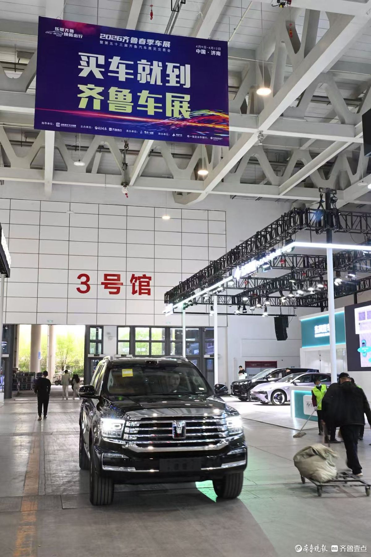 备受瞩目的2026齐鲁春季车展(第五十三届齐鲁汽车展览交易会)即将盛大启幕,4月8日,在山东国际会展中心,展车车辆陆续进入展馆,工作人员现场忙着“摆台”,为第二天的车站开幕做足准备。(齐鲁晚报·齐鲁壹点记者王媛实习生徐佳宁)