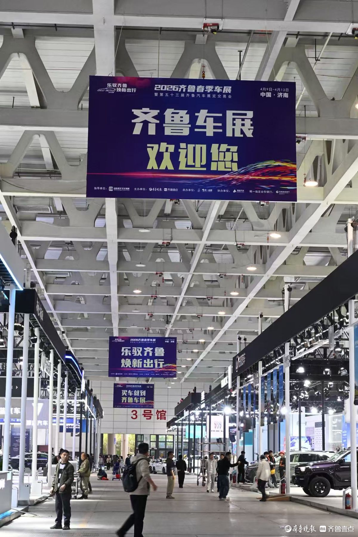 备受瞩目的2026齐鲁春季车展(第五十三届齐鲁汽车展览交易会)即将盛大启幕,4月8日,在山东国际会展中心,很多汽车展台已经装修完工,正在做最后的收尾工作。音乐灯光特效等均在调试中,展台上的展车已经光彩夺目,静候明日开幕。(齐鲁晚报·齐鲁壹点记者王媛实习生徐佳宁)