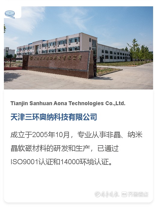 中科三环官网显示,天津三环奥纳科技有限公司专业从事非晶、纳米晶软磁材料的研发和生产,已通过ISO9001认证和14000环境认证。