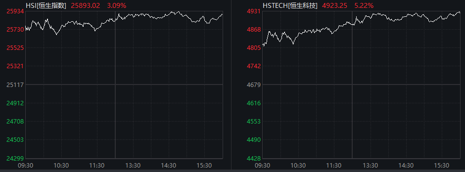 港股同样大涨。截至4月8日收盘,香港恒生指数收涨3.09%,恒生科技指数涨5.22%。