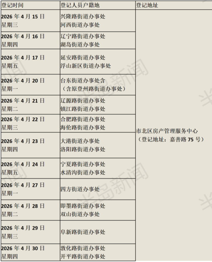 2.为避免人员聚集,保障现场登记秩序,方便申请人登记,本次配租登记以街道办事处为单位实行错时分散登记。具体登记时间:上午9:00—11:30,下午1:30—4:30。具体登记日期、地点如下: