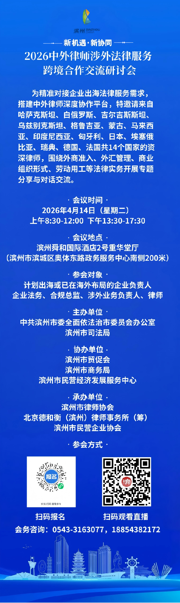 滨州律师报名了 4月14日中外律师涉外法律服务跨境合作交流研讨会举行
