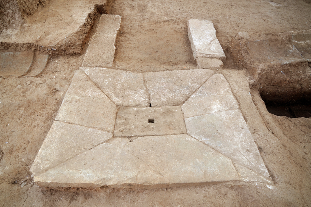 除排水设施外,还发现设计精妙的集蓄水设施,由水池和井窖构成,井窖在基岩上挖出,深约2.5米,井口较小,口部石框高出池底,雨量较大时,水池汇聚的上游来水会没过井口、流入井窖储存起来,从而为山顶提供较稳定的水源。