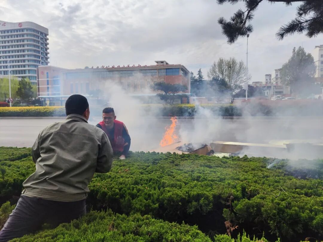 4月8日上午9时许,泰安市万官大街惠普家园西区附近路段突发火情——一辆行驶中的货车突然起火,车载家具货物被迅速引燃,火势汹汹,随时可能酿成重大安全事故。危急时刻,泰山城区热力有限公司高铁供热分公司退役军人职工张庆林、蒋天斌途经此处时,毫不犹豫伸出援手,果断挺身而出,以军人本色与专业素养上演了一场极速救援。