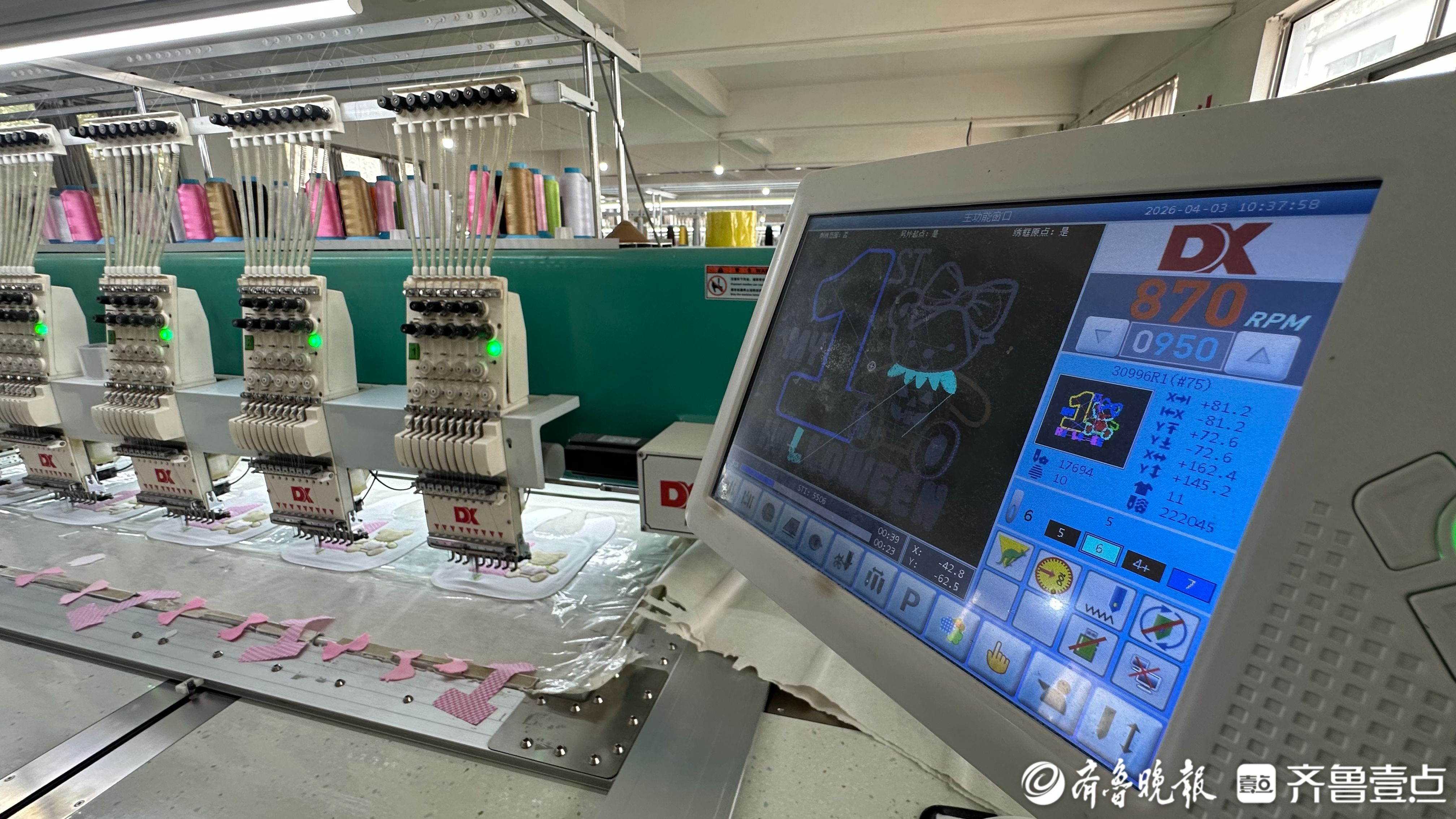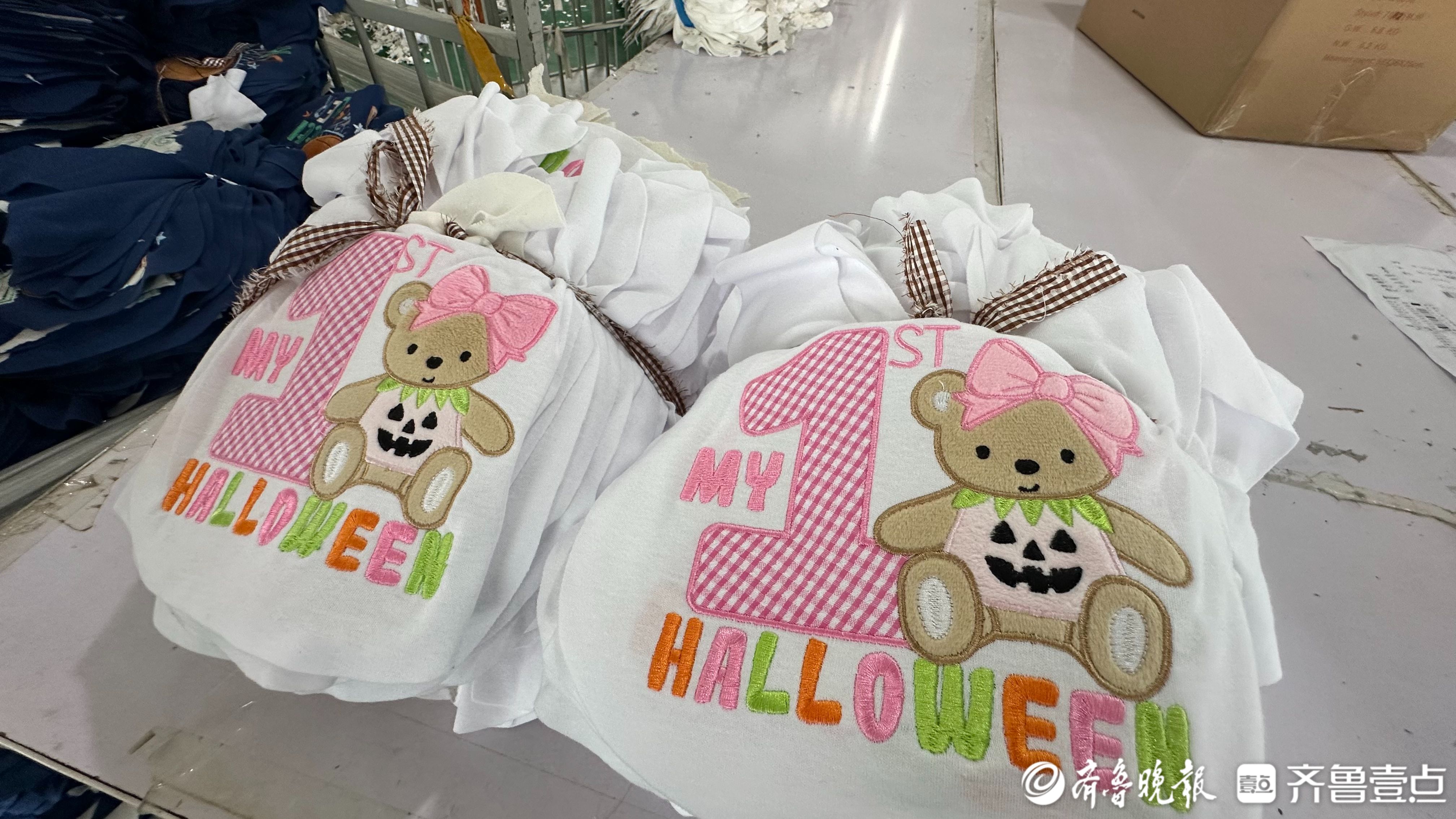 记者去绣花车间的时候,机器上正在赶制万圣节、圣诞节主题的产品。“6月30日前必须全部离场。”孙景荣说,“海上漂一个月,到了还要分拣到各个商场。”