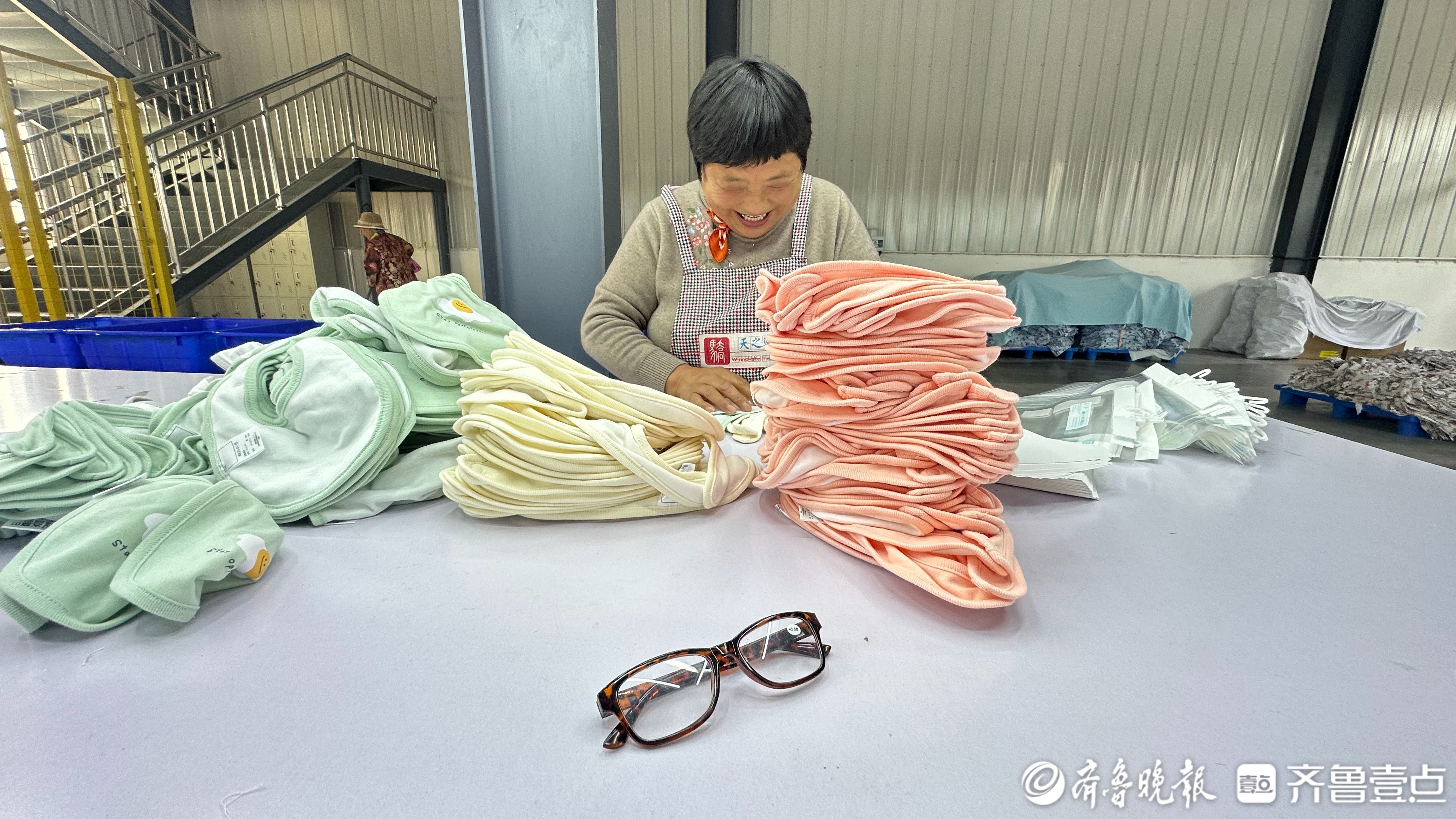 对于年龄稍长的,无法从事绣花裁剪这样精细的作业,更多的是质检、包装。记者碰到一位65岁的妇女,叫付应侠,正乐乐呵呵地给婴儿口水巾做包装。问她怎么这么大岁数还来上班,她哈哈一笑,“孙子都成人了,不用我带。在家呆着没意思,也不想歇周末。来厂里干一天活,一走一天没心事,晚上回家老头把饭都做好了。”一个月挣的钱自己花,花得自在。她说这话时,手上的活儿没停。