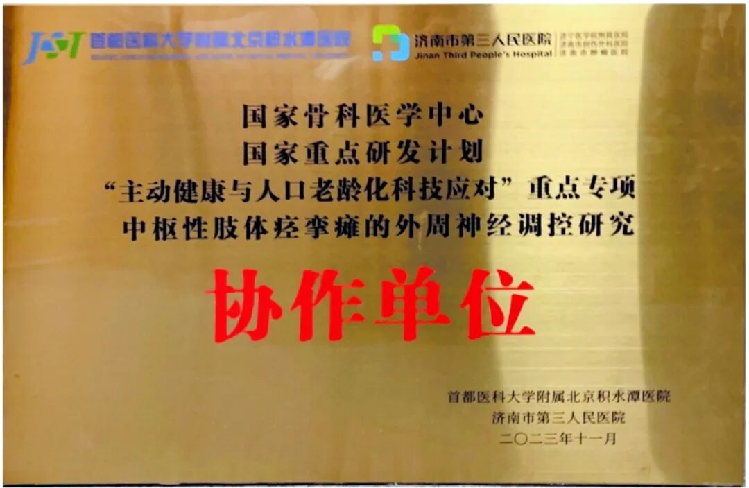 2024年4月,“中枢性肢体痉挛瘫的外周神经调控研究”项目落户济南市第三人民医院