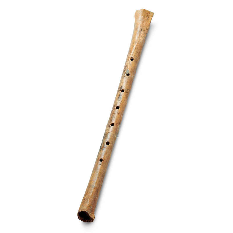 出土于河南舞阳贾湖遗址的骨笛,笛身上钻有七个精心排列的音孔。音孔周围保留着深浅不一的刻痕,是贾湖先民在制作过程中留下的标记。这种七孔骨笛不仅可以吹奏出完整的七声音阶,而且具有相当高的音准。晚期的八孔骨笛,甚至能够吹出一些七声音阶之外的或高或低的变化音,完全超出了现代人的想象。在生存条件相当有限的情况下,八千年前中原大地的人们依然致力于创造美好生活,享受音乐带来的愉悦。贾湖骨笛的发现,将中国七声音阶的历史前推至八千年前,改写了世界音乐史。这些器物从未真正沉默,每一件都在讲述着远比文字记载更为丰富和真实的故事。