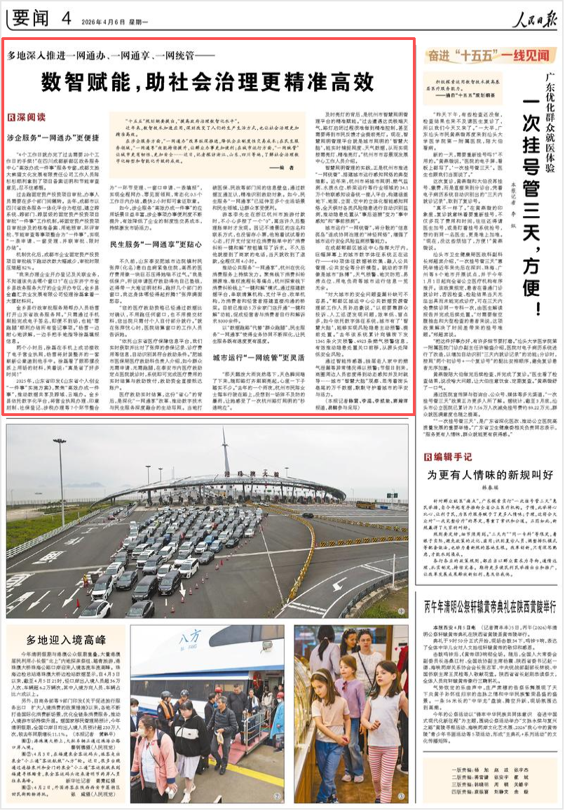 4月6日,《人民日报》刊发文章:《多地深入推进一网通办、一网通享、一网统管——数智赋能,助社会治理更精准高效(深阅读)》,点赞山东省个人创业“一件事”经验做法。全文如下: