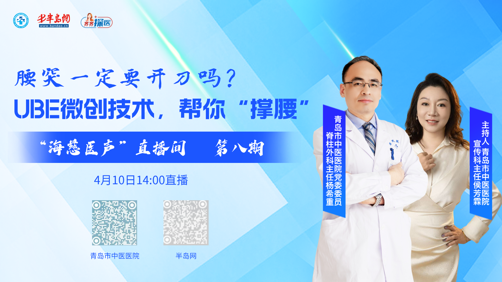 4月10日14:00,青岛市中医医院脊柱外科杨希重主任做客“海慈医声”直播间,和您聊聊“UBE微创技术”。