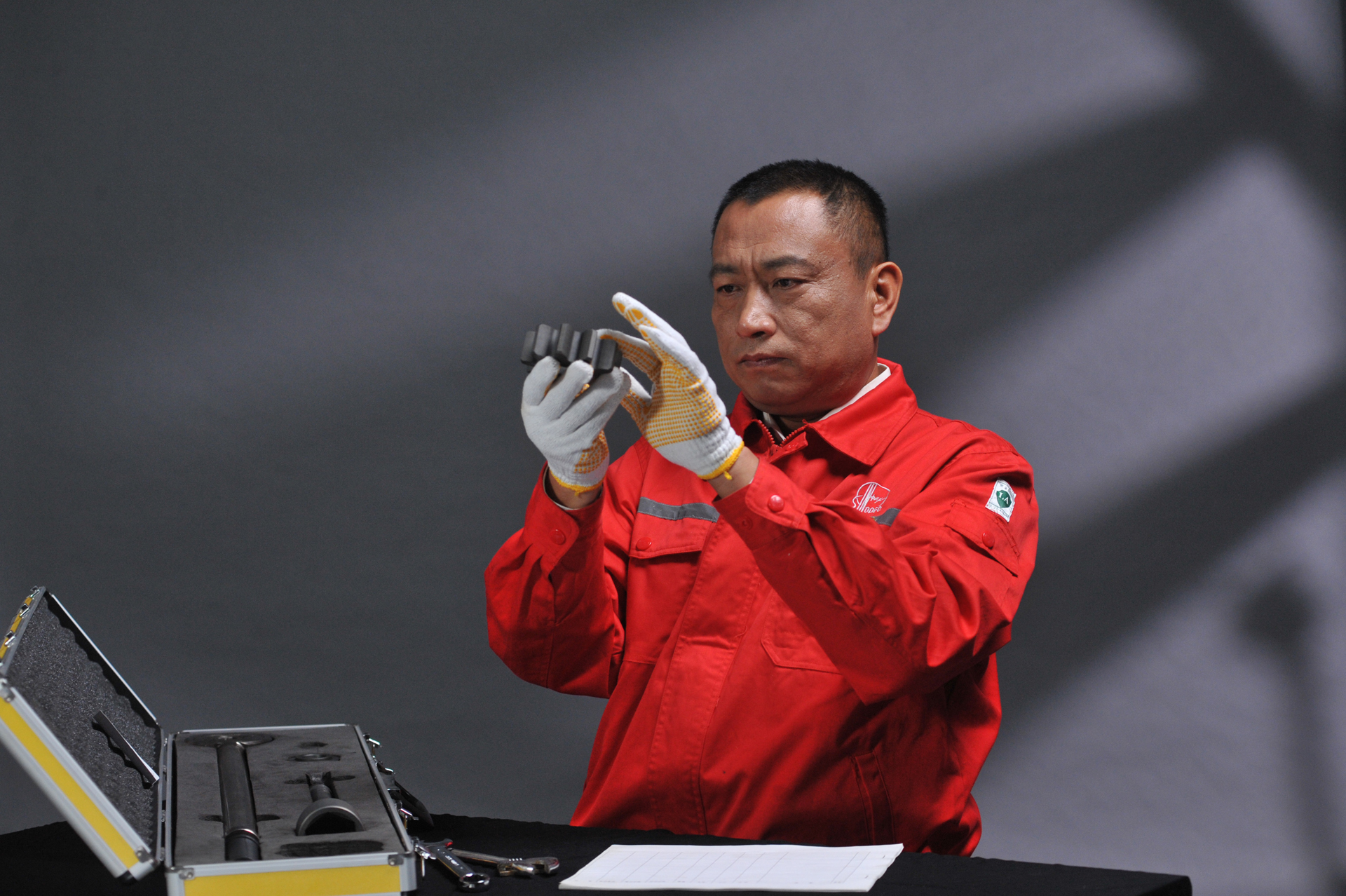 那几年,唐守忠时常白天泡在井场,拿着尺子量、拿着本子记,收集了上千张示功图和几万个运行数据;晚上回到工作室反复比对、画图演算,常常熬到凌晨。功夫不负有心人,他最终发现了抽油机载荷变化与掺水量之间的微妙规律,首创了“示功图法调控掺水量”和“抽油机快速卸载法”,这一成果使光杆的使用周期延长了3倍。包括上述成果在内,唐守忠集成研究的十多项成果最终被中华全国总工会正式命名为《大国工匠工作法——唐守忠工作法》,在全国各油田推广应用。