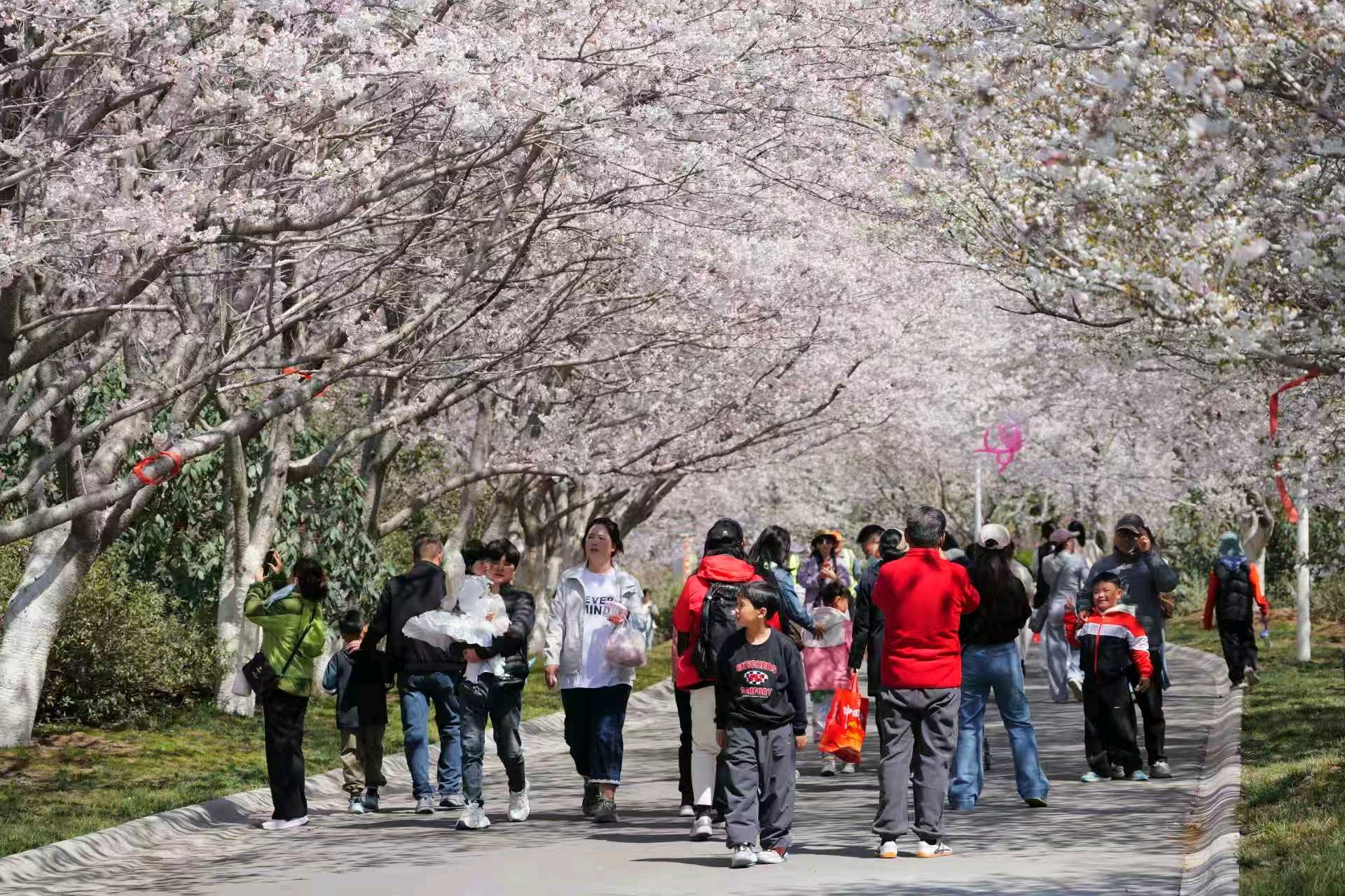 张家楼街道画美达尼乡村振兴片区以樱花为核心IP,深化“三化联营、共赢共富”模式,将自然盛景与人文艺术、亲子游乐、田园采摘深度融合。“刚入园便被大片樱花花海震撼,粉白花瓣随风飘落,像闯进了童话世界。”4月5日,来自青岛市区的游客张心悦和家人在泽丰生态园驻足拍照。