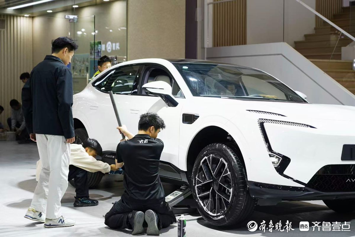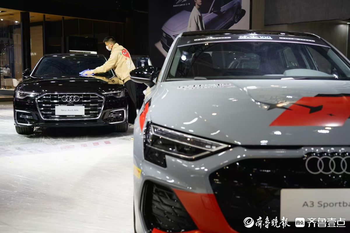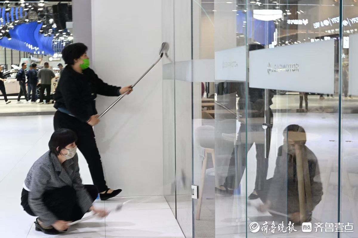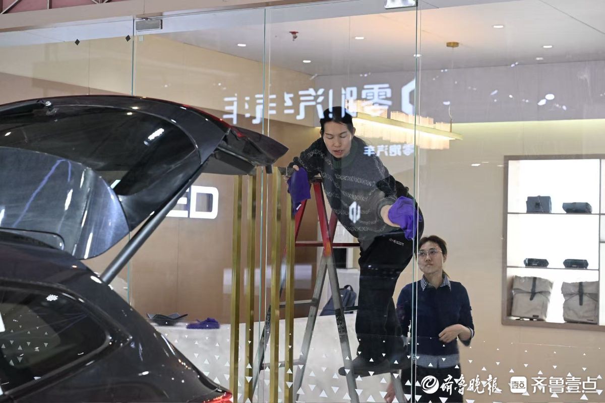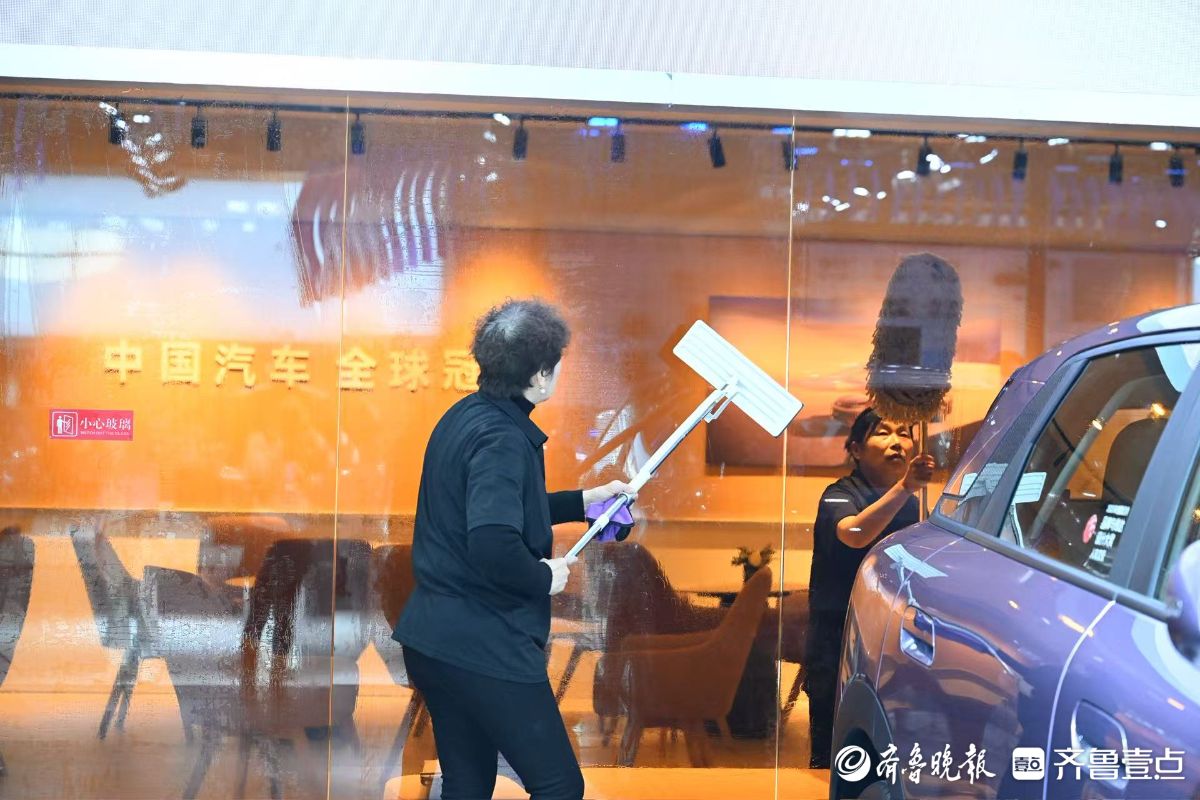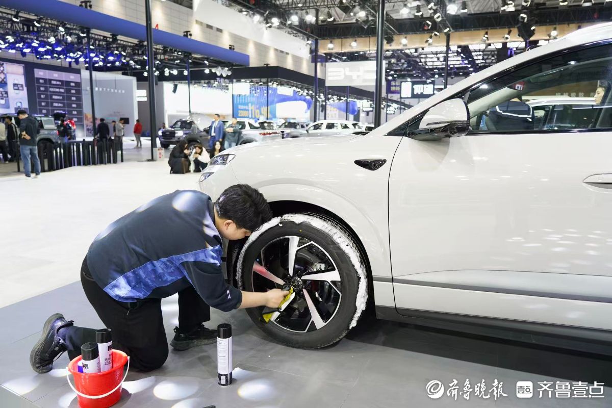 2026齐鲁春季车展(第五十三届齐鲁汽车展览交易会)将在山东国际会展中心启幕。4月8日,在车展布置现场,工作人员正手持抹布,精心擦拭着每一辆展车。锃亮的新展车就等明天惊艳“靓”相。齐鲁晚报·齐鲁壹点记者王媛实习生徐佳宁