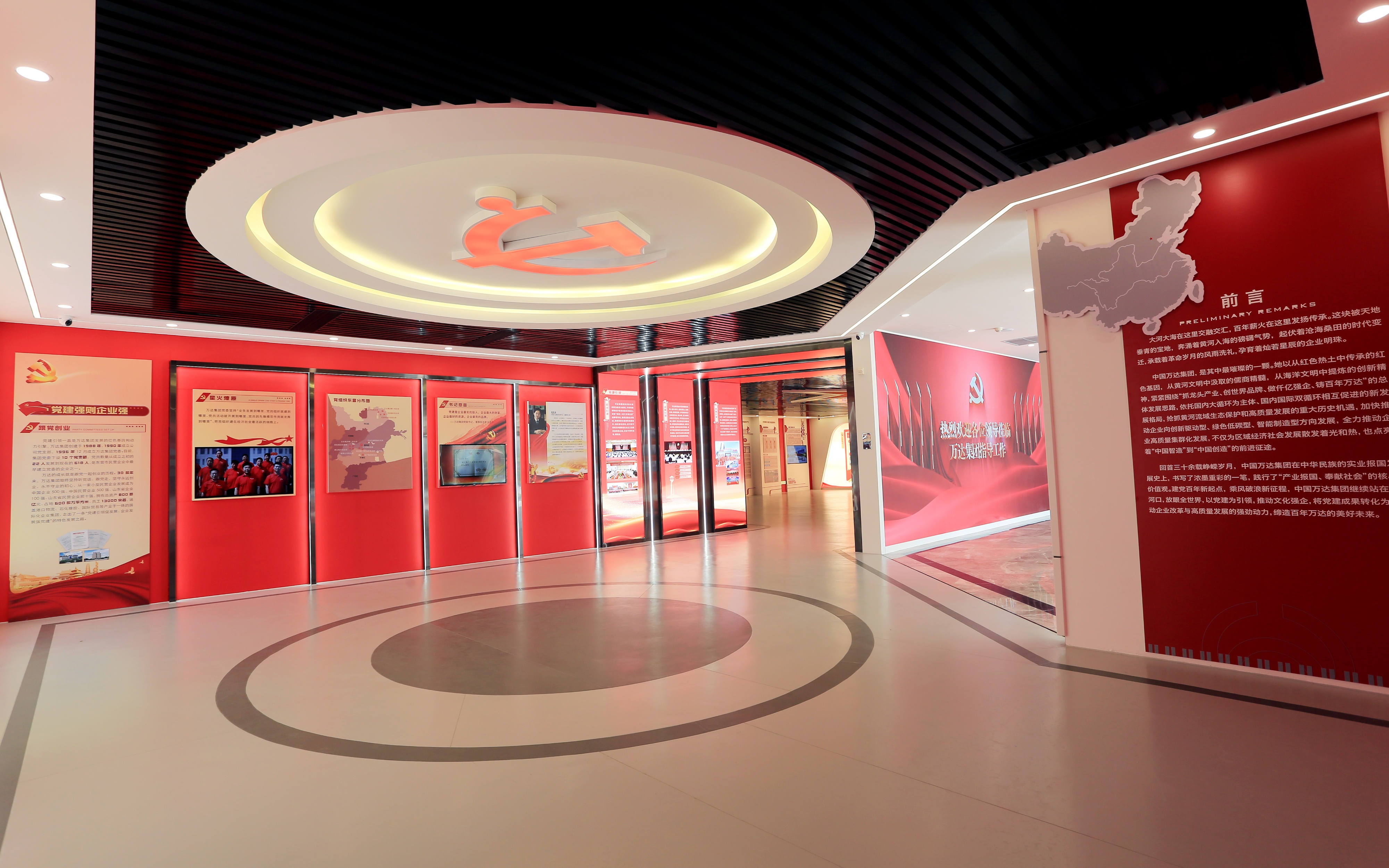 儒商文化首重“义以生利”“见得思义”,强调商业活动必须合乎道义,行走在光明正大的“正道”之上。万达集团1996年成立党委,始终把党的政治建设摆在首位,创新打造了以“红色万达”为理念统领,以“红色新动能、万达永动力”为党建品牌的万达特色非公企业党建模式,将“正道经营”理念转化为感党恩、听党话、跟党走的行动自觉,确保企业的发展方向始终与国家发展大局同频共振。加强党建阵地建设,先后投资建设了“企业党建+数字化展厅”一体化展馆——万达集团展览馆和东营市首家非公企业党校,打造了“万达展馆—红旗车间—党委党校”于一体的红色党建参观路线,拓展了区域非公党建新阵地。同时,聚焦生产车间一线,设置53个党小组、125个党员责任区,建设18个“红旗车间”,有效激发了基层党建活力。推动党建赋能增效,把支部建在项目上,让党旗飘在第一线。党员带头发扬“5+2”“白+黑”以及“不谈环境、不讲条件、不说困难”的拼搏精神,原定至少2-3年的建设工程不到15个月全部建设完成,用“党建力度”刷新了“万达速度”。万达党建案例入选中央党校理论网组织的第三届全国民企党建交流案例,并在《支部生活》等媒介平台进行宣传推广。