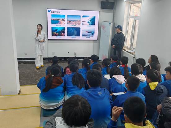 少先队员们聆听了科普报告《初识海洋》。科研人员以生动的语言、丰富的影像资料,带领同学们走进浩瀚海洋的世界。从海洋的物理特征到资源分布,从海洋生态系统到全球气候变化,报告深入浅出,既衔接了地理、生物学科教材中的核心知识,又拓展了前沿科技视野。