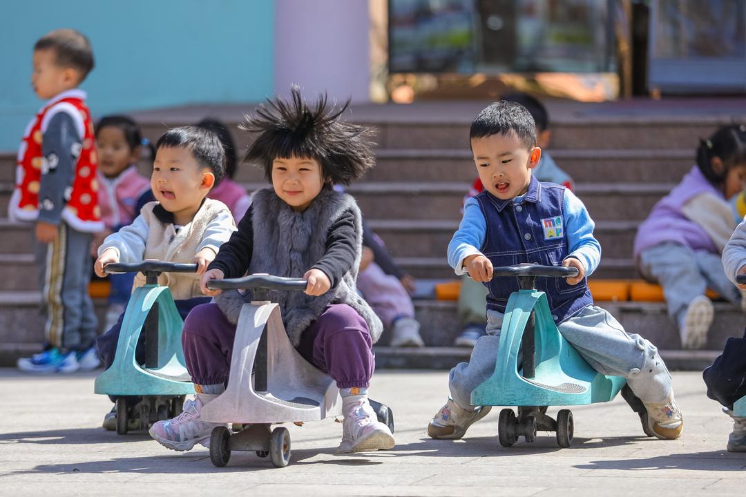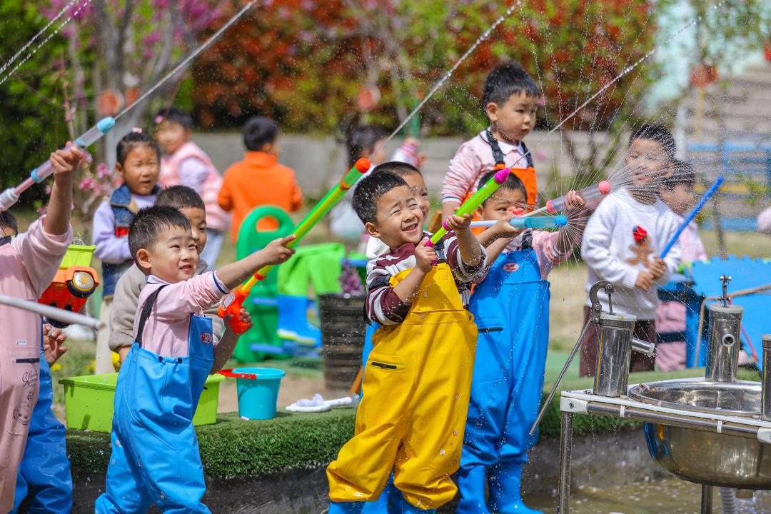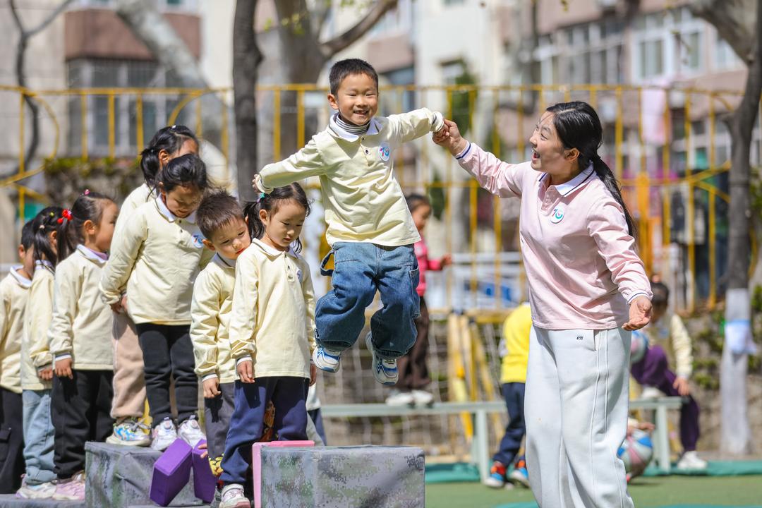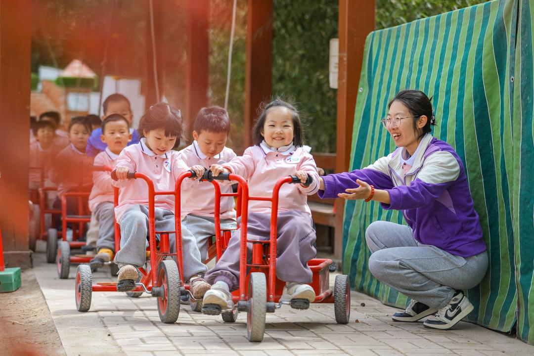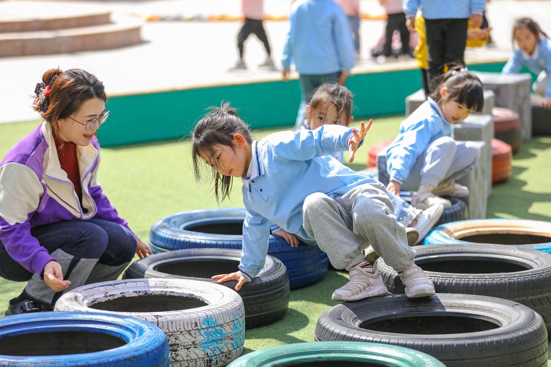 春日暖阳下,青岛市李沧区夏庄路幼儿园里一片欢声笑语。4月8日,孩子们在老师带领下,兴致勃勃地参与戏水、平衡车、滚筒协力车等户外游戏项目,在运动中尽情释放天性,收获快乐与成长。