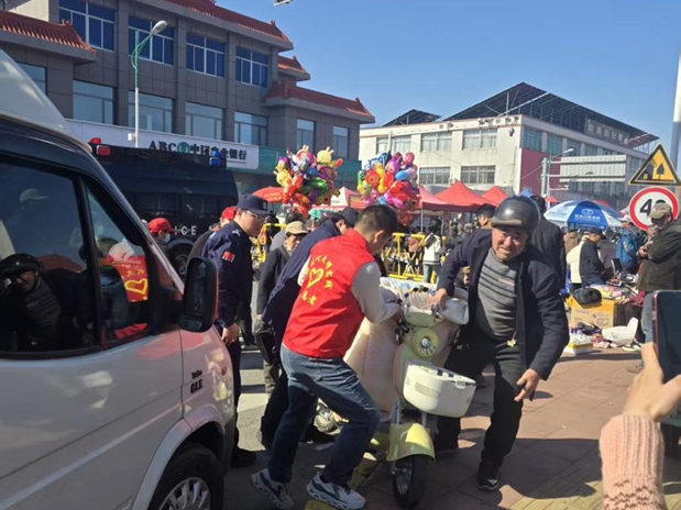 在庙会现场,志愿者们身着统一志愿服装,坚守岗位、主动作为,全力开展秩序维护工作。他们耐心劝导占道经营的摊主规范摆放摊位,及时清理道路杂物,保障通行顺畅;细致排查现场违章停车行为,主动引导车辆有序停放,有效缓解交通压力;积极配合公安交警部门开展巡逻防控、人流疏导,细致排查各类安全隐患,全力守护群众逛会安全。志愿者们的身影穿梭在人流之中,用真诚的服务、坚定的坚守践行信义精神,成为庙会里一道温暖的风景线,赢得了群众和摊主的一致好评。
