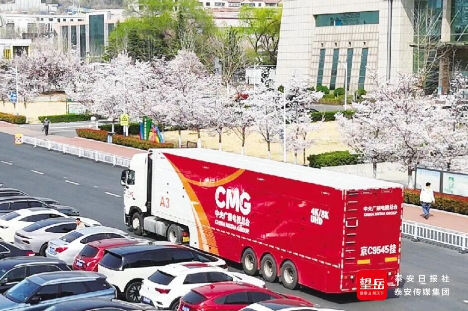 “央视转播车来了!”3月24日,中央广播电视总台“中国红”转播车驶入泰安,不少球迷专程前往打卡。这辆配备4K/8K超高清制作能力的转播车,连同音频车、卫星车等顶尖设备悉数到位。数个专业机位全程覆盖,高空俯拍、地面跟拍、球员特写……每一个精彩瞬间都被清晰捕捉,传向千家万户。