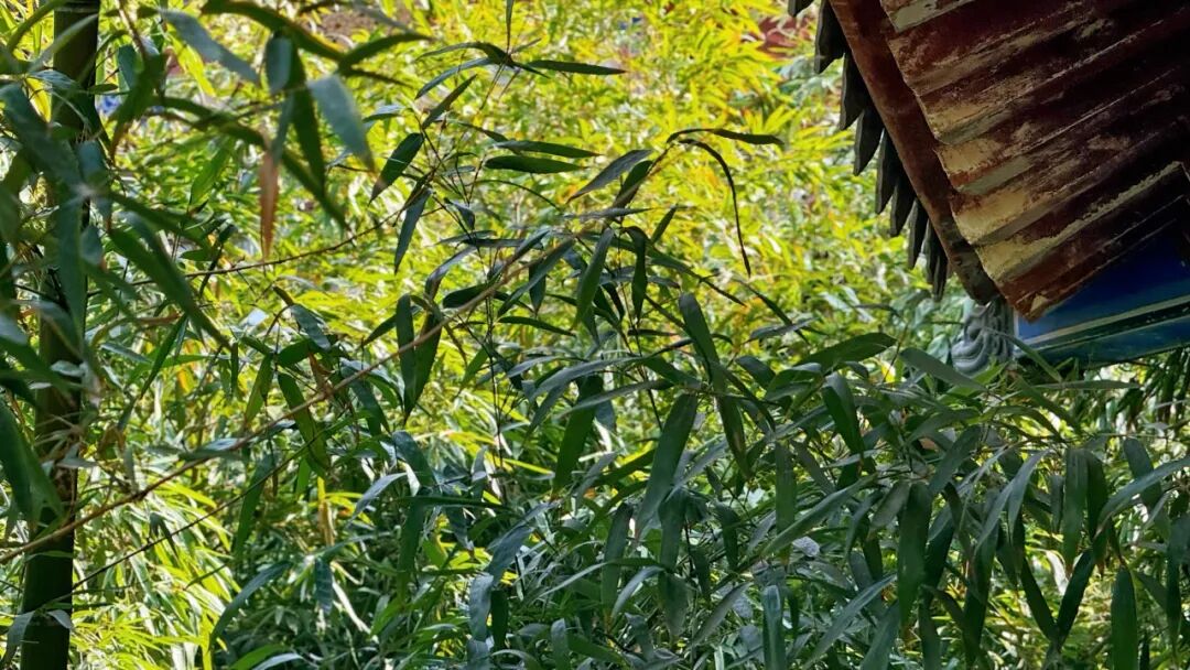 繁花次第绽放,暗香随风浮动,阳光穿过古树枝叶,在地上洒下斑驳光影;微风拂过,檐角风铃轻响,清脆悦耳。
