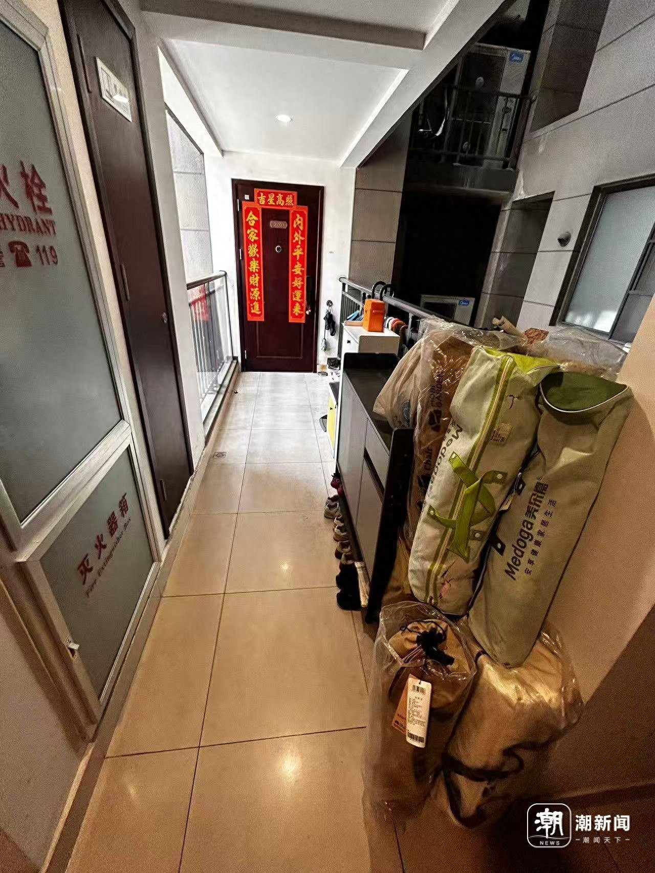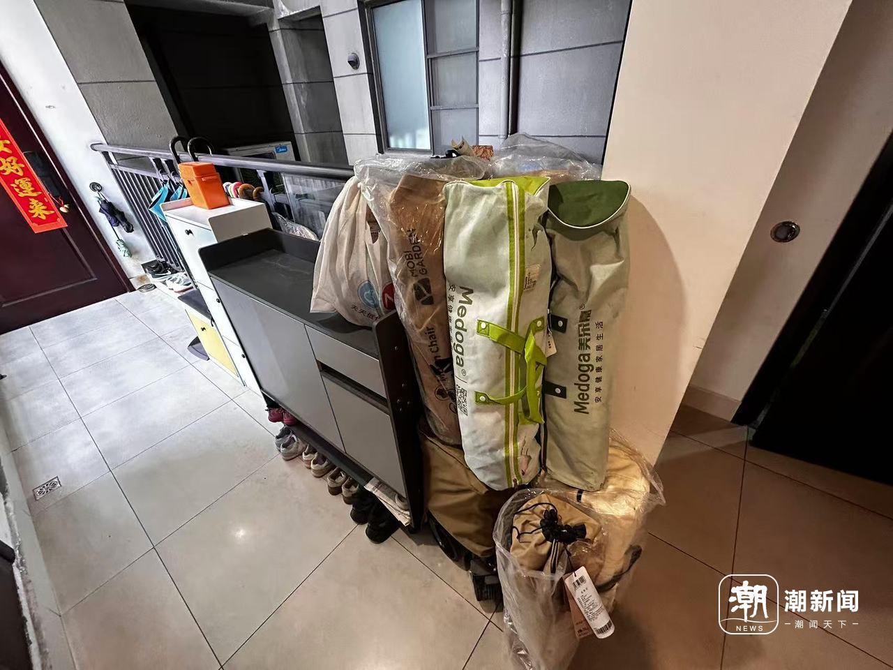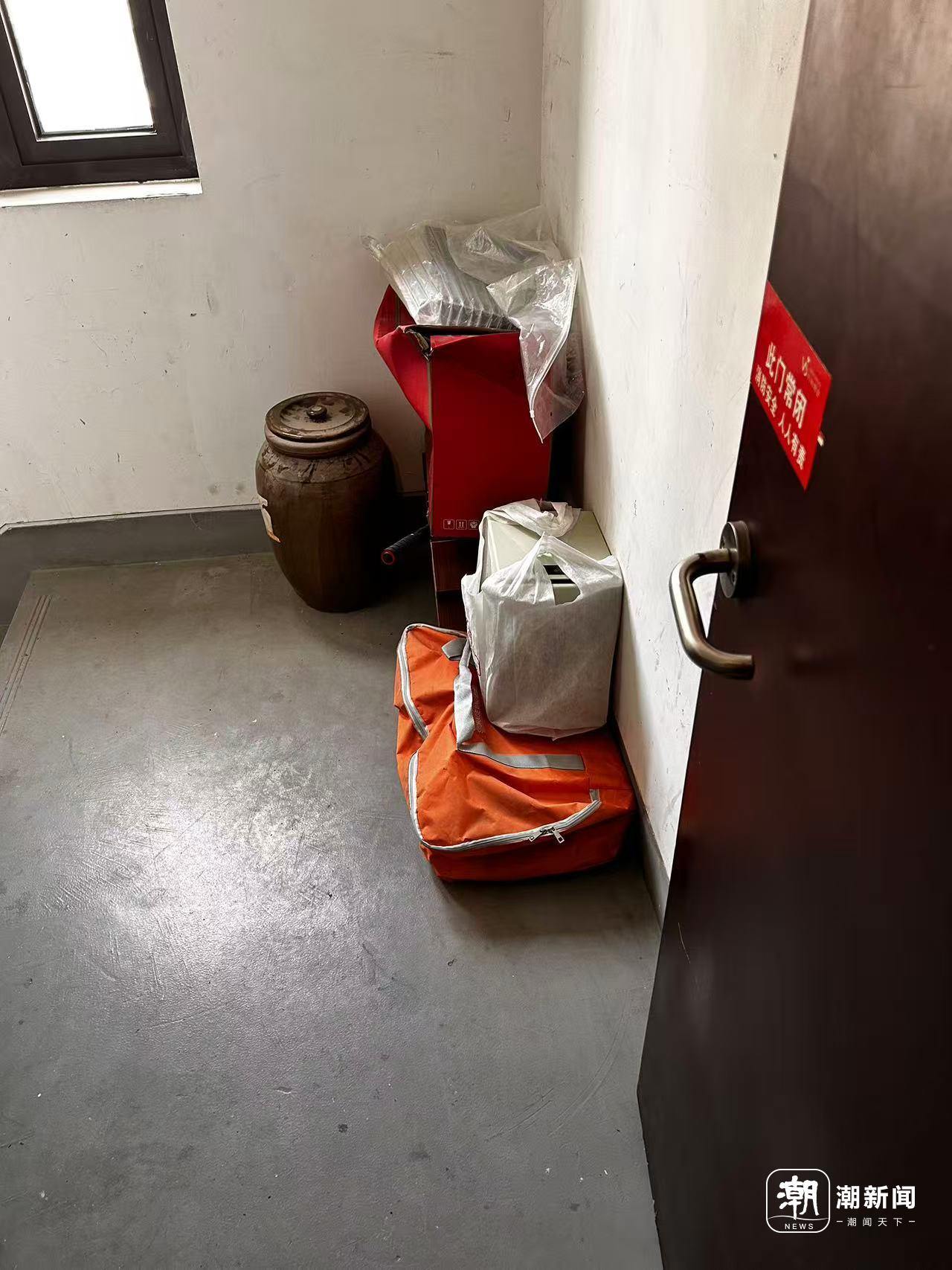 事情要从今年春节期间说起。从那时起,对门的住户开始陆续将鞋柜、滑板车、露营器材等杂物堆放在楼层的公共过道与消防通道,还紧贴陈先生家门口。