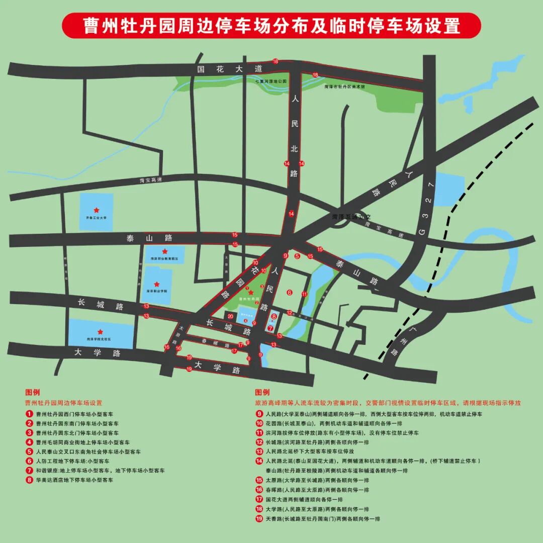 牡丹交警温馨提示:以下停车场为周末、节假日车流量较大时设置的临时停车场,届时,牡丹交警将根据车流情况,适时设置临时停车场,请大家根据附近交警指挥前往。