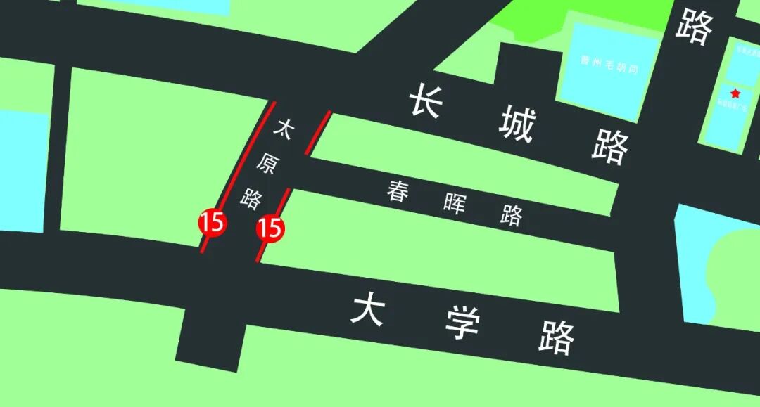 太原路(大学路至长城路) 两侧各顺向停一排。