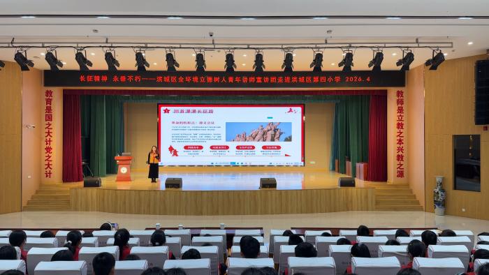 滨州日报/滨州网讯为深入推进全环境立德树人工程,厚植青少年红色基因与爱国情怀,擦亮滨城区文明办“红色火炬”红色教育品牌,赓续红色血脉、传承奋斗精神,4月8日,滨城区第四小学依托“红色火炬”品牌建设开展“红色火炬”之长征精神主题宣讲,为学生带来一堂生动的红色思政课,让红色教育的火种在校园落地生根、点亮童心。