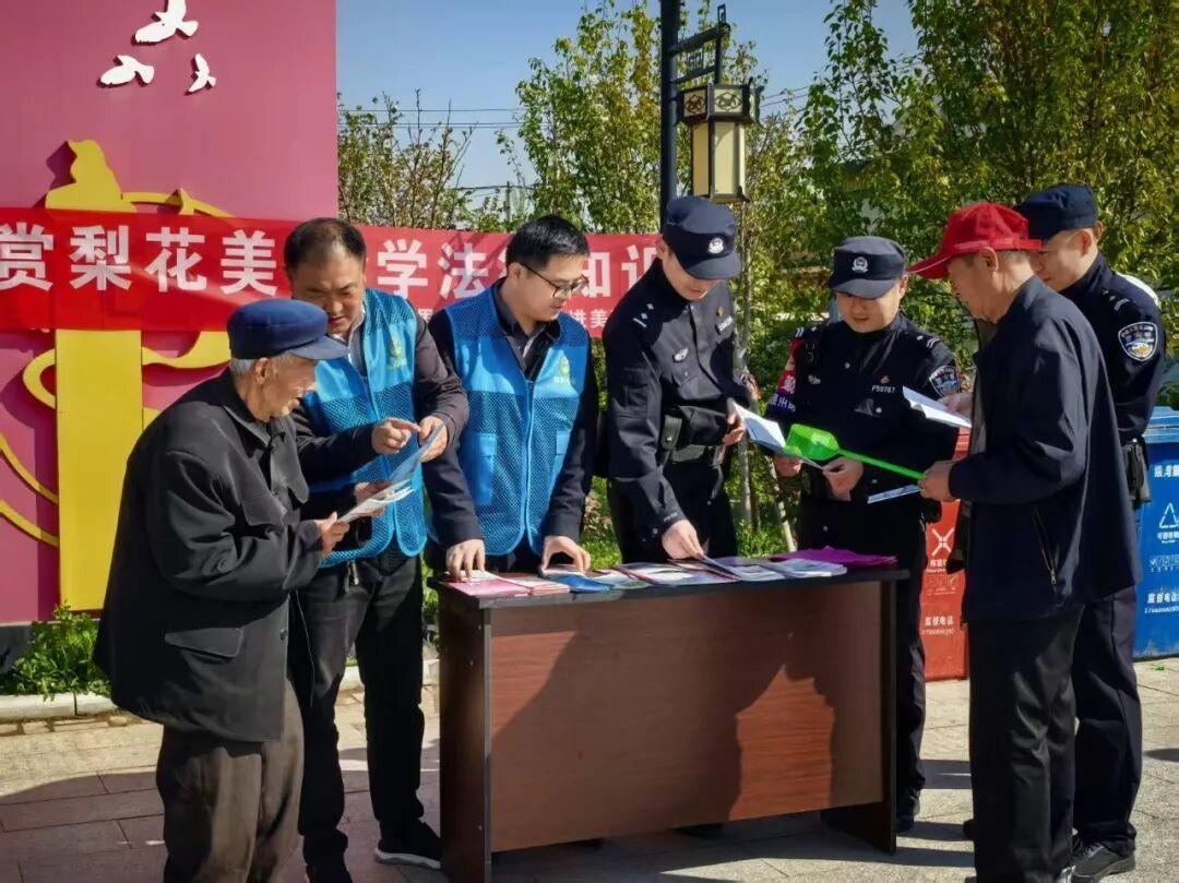 4 月 4 日上午,丁里长街道张武屯村第七届乡村旅游活动开幕。街道司法所联合派出所,借活动契机开展 “赏梨花美景 学法律知识 普法走进美丽乡村” 主题法治宣传,为乡村文旅发展筑牢法治屏障。