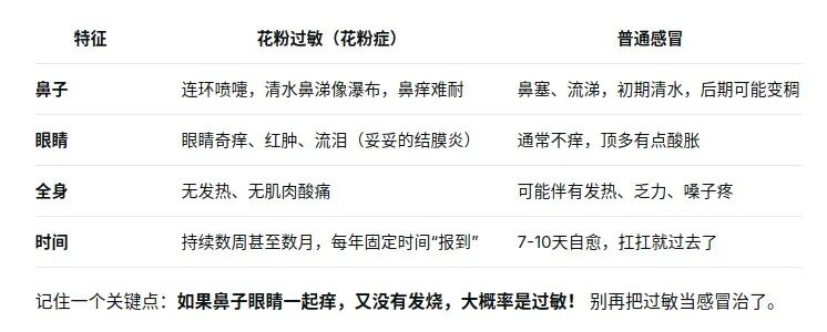 是“感冒”还是“过敏”?一张表教你分清