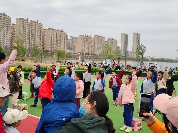 滨州日报/滨州网讯傍晚,玉龙湖公园里,一阵清脆的童声吸引了散步的人群。滨城区北镇新苑幼儿园把大班“古诗词节目”搬到户外。孩子们站上公园空地,儿歌唱起来,古诗诵起来,吸引了诸多带娃家长驻足围观,成了一次“沉浸式招生宣传”。