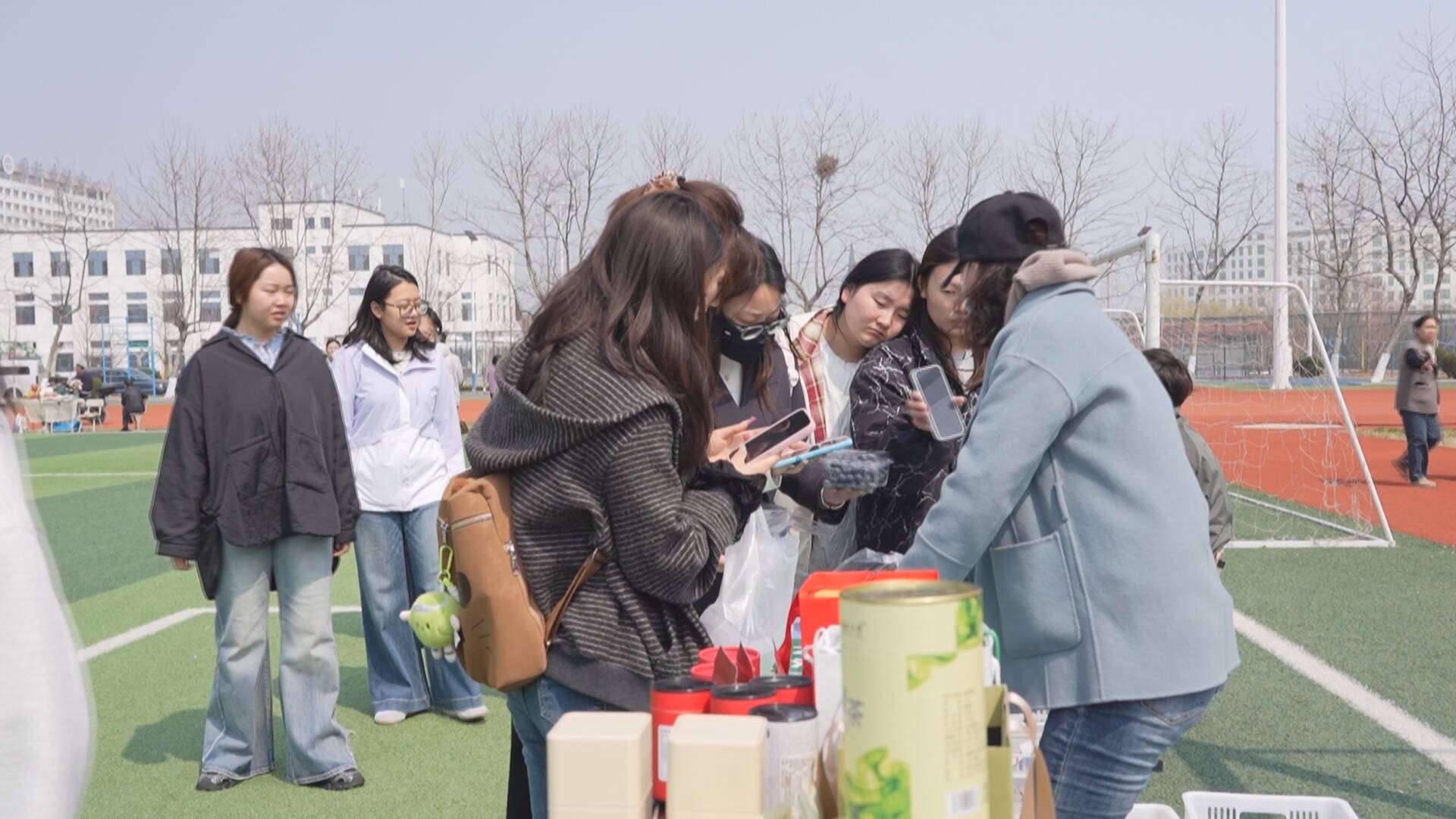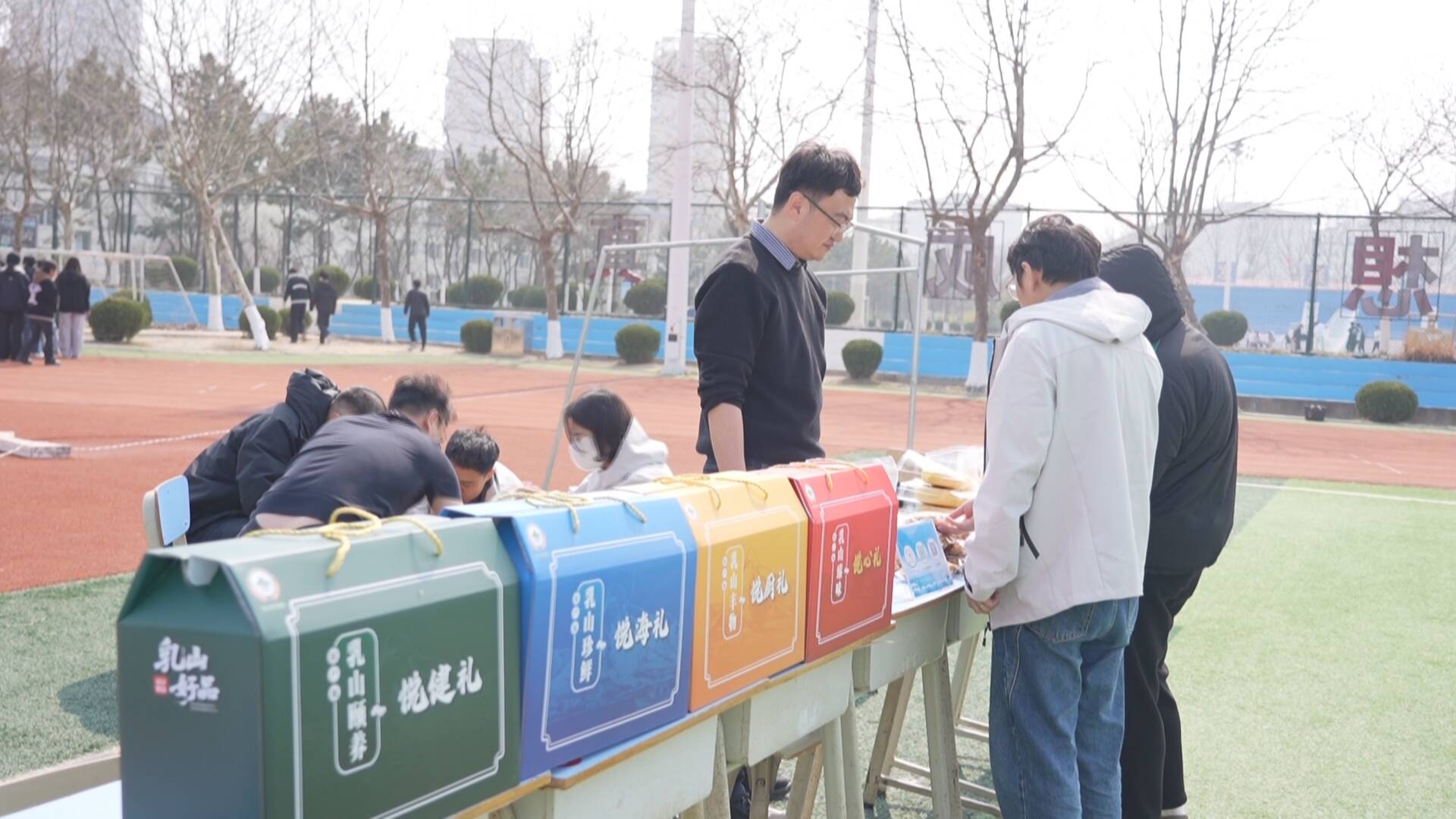 在户外广场的“乳山好品”市集同样人气高涨。绿茶、喜饼、草莓、文创等几十种特产好物集中亮相,工作人员和志愿者现场讲解产品特色、生产工艺与营养价值,邀请师生免费品尝、体验。优良品质和独特风味引得师生们驻足咨询、挑选采购。“快赶上清明假期了,正好学校里也有乳山特色好物活动,我就买了一些乳山茶给家里人,自己也买了点草莓,希望家里人尝尝乳山的特色。”山东外事职业大学学生刘淼说。