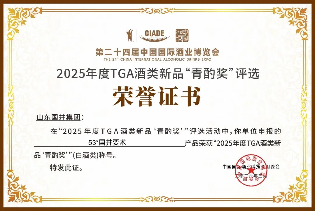 两大盛会上,53°国井要术荣获2025年度“青酌奖”,53°国香国井·国20荣获“2025年度标杆价值品牌”“CWSA国际酒类大奖赛金奖”。