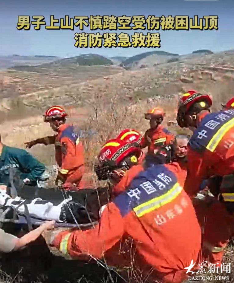 ▶男子受伤被困山顶 消防员紧急救援@山东消防