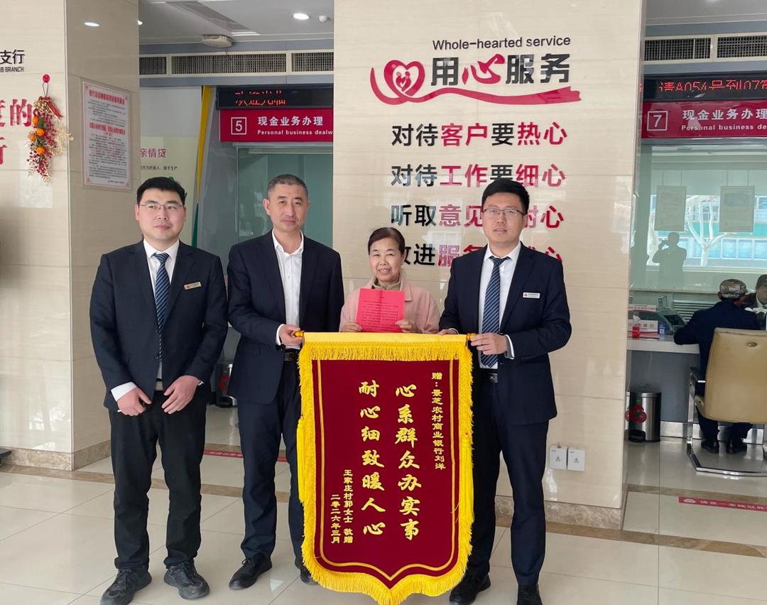 “这名年轻同志爱岗敬业、心系群众、耐心细致的工作作风,让我深受感动,也让我真切感受到了农商银行贴心为民的服务温度。”郭女士在感谢信中动情写道。为表达谢意,她特意定制锦旗,准备感谢信,专程送到支行,对这名员工的贴心服务表示感谢,也为农商银行培养出这样踏实肯干的好员工点赞。