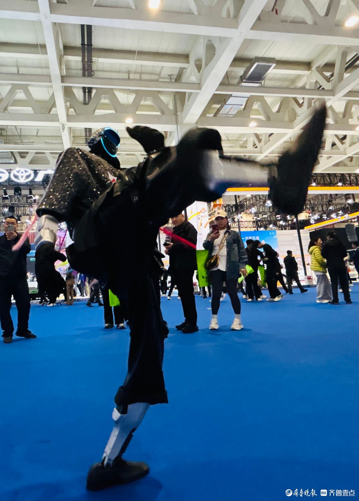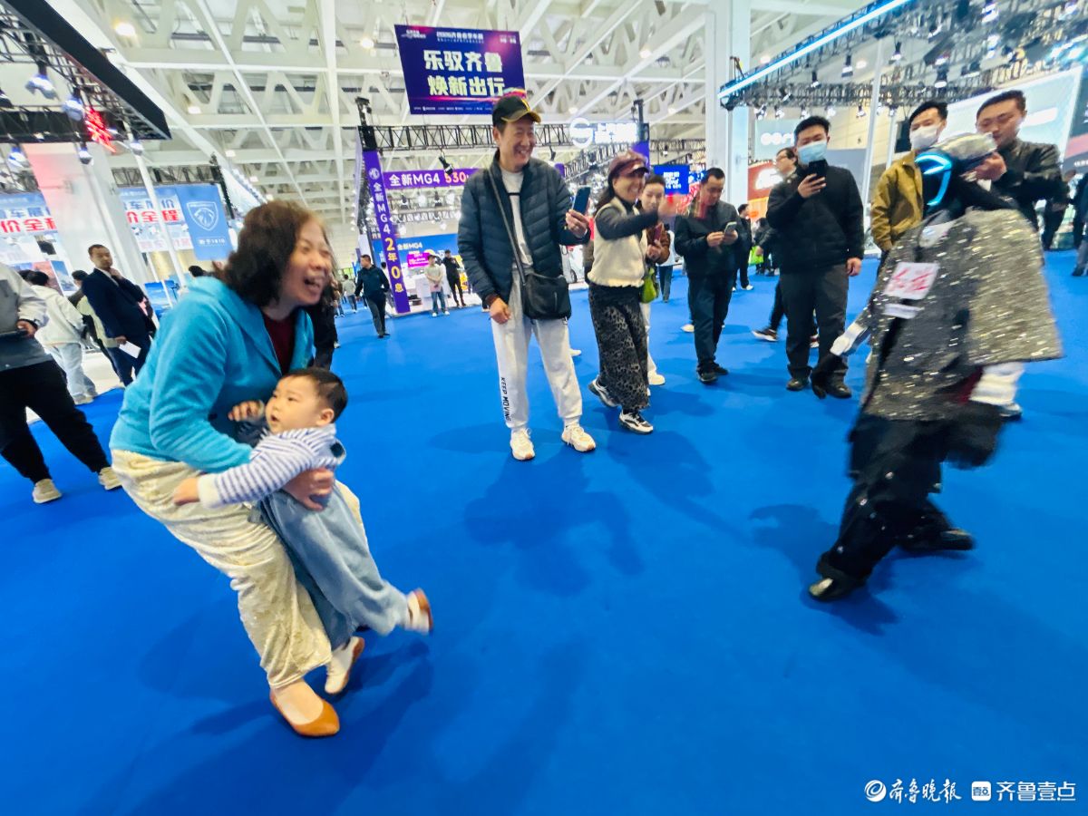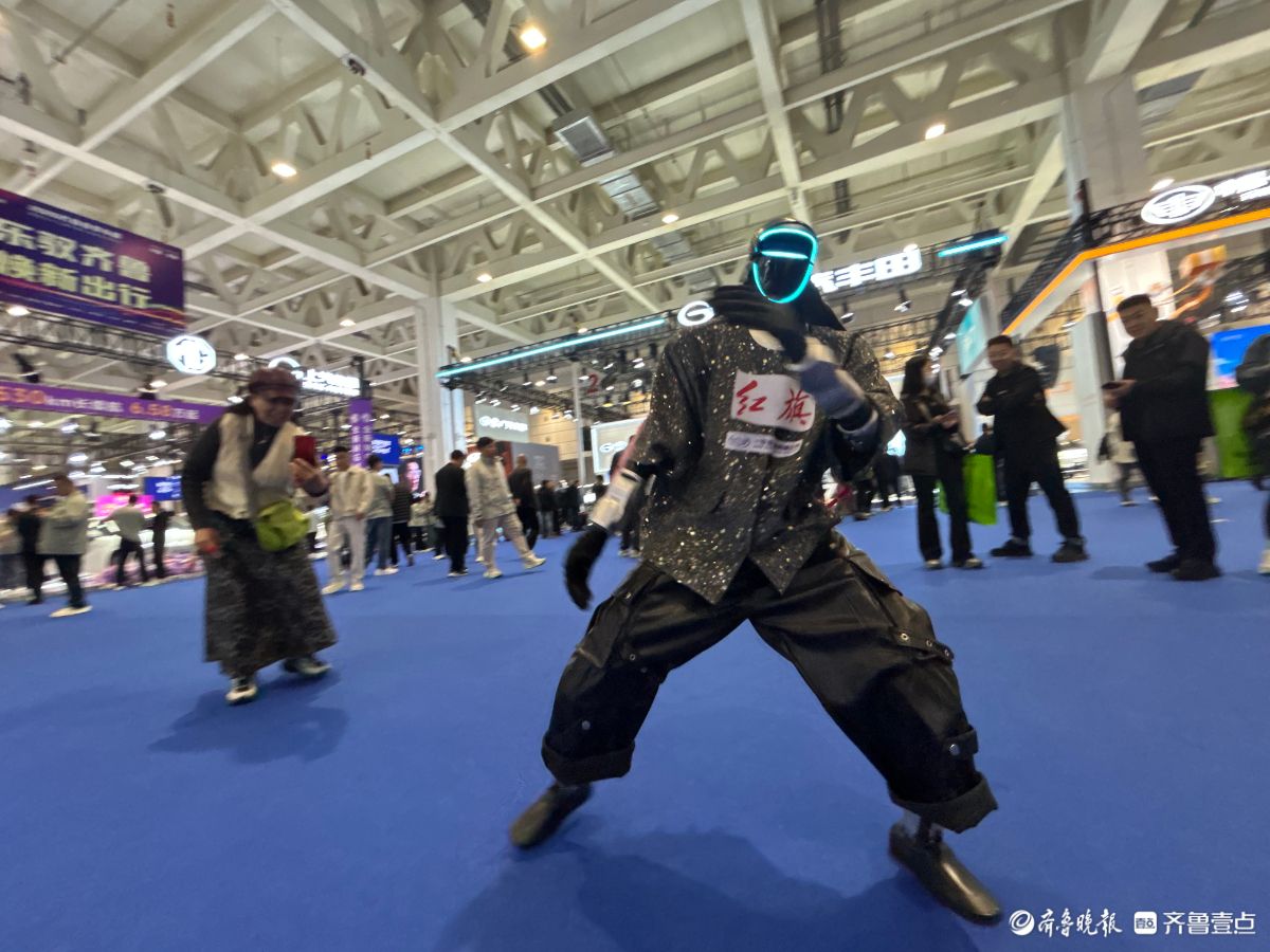4月9日至13日,2026齐鲁春季车展暨第五十三届齐鲁汽车展览交易会在山东国际会展中心隆重举办。车展首日,一款装扮前卫的智能机器人不仅会走太空步,一身凌利的功夫更是让观众大开眼界,纷纷上前与机器人互动。(齐鲁晚报·齐鲁壹点记者陈文进)