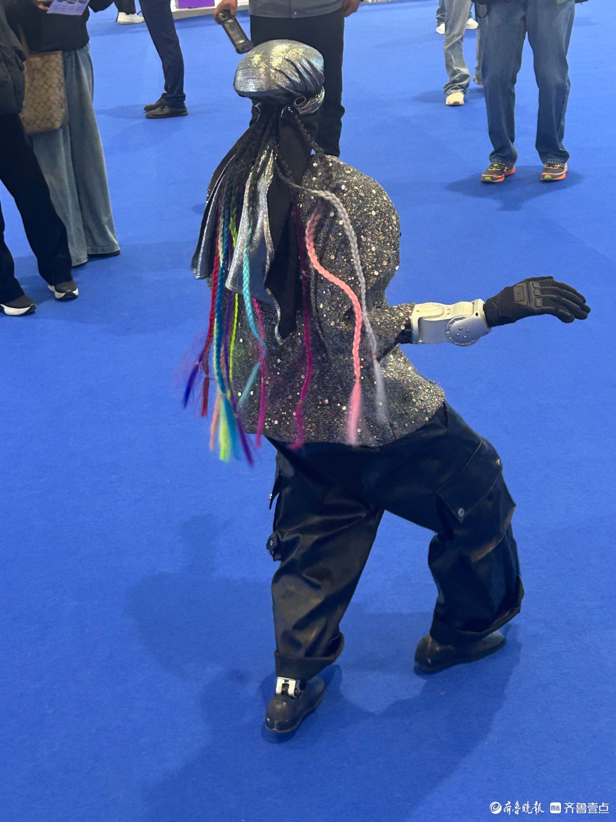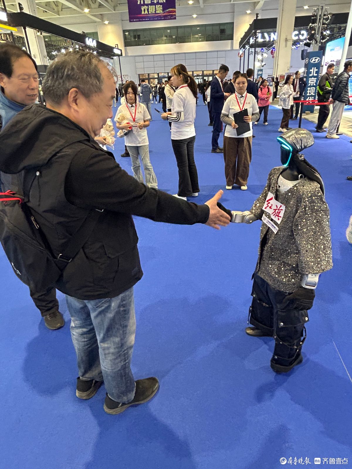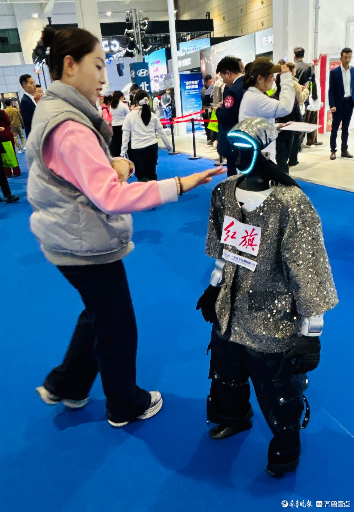 4月9日至13日,2026齐鲁春季车展暨第五十三届齐鲁汽车展览交易会在山东国际会展中心隆重举办。车展首日,一款装扮前卫的智能机器人不仅会走太空步,一身凌利的功夫更是让观众大开眼界,纷纷上前与机器人互动。(齐鲁晚报·齐鲁壹点记者陈文进)