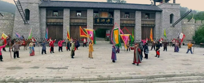 “大河向东流哇,天上的星星参北斗哇!”登临梁山山寨,在“好汉迎宾”的鼓声中,感受一百单八将的万丈豪情。