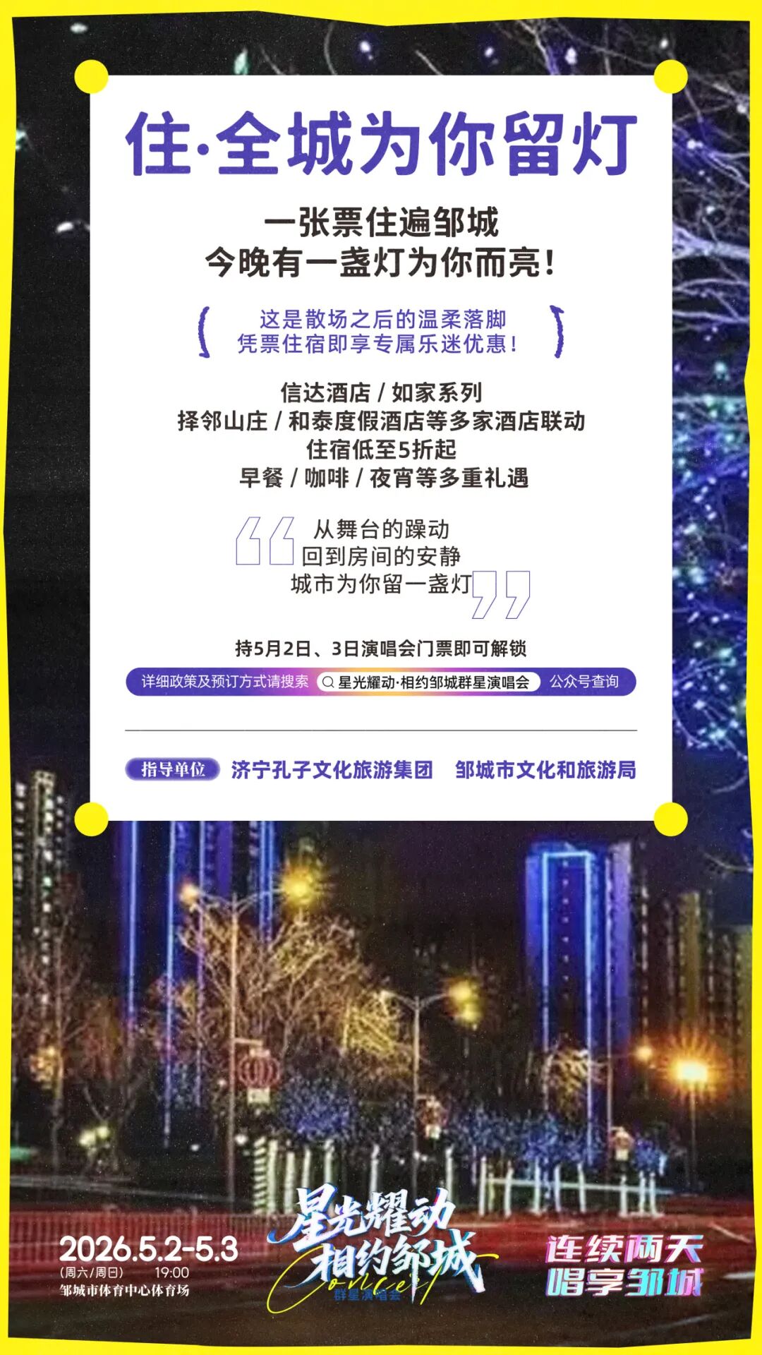 凭演唱会门票享有多家酒店专属优惠