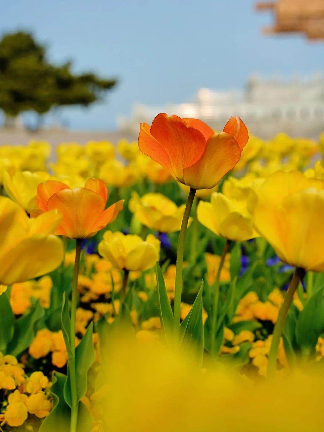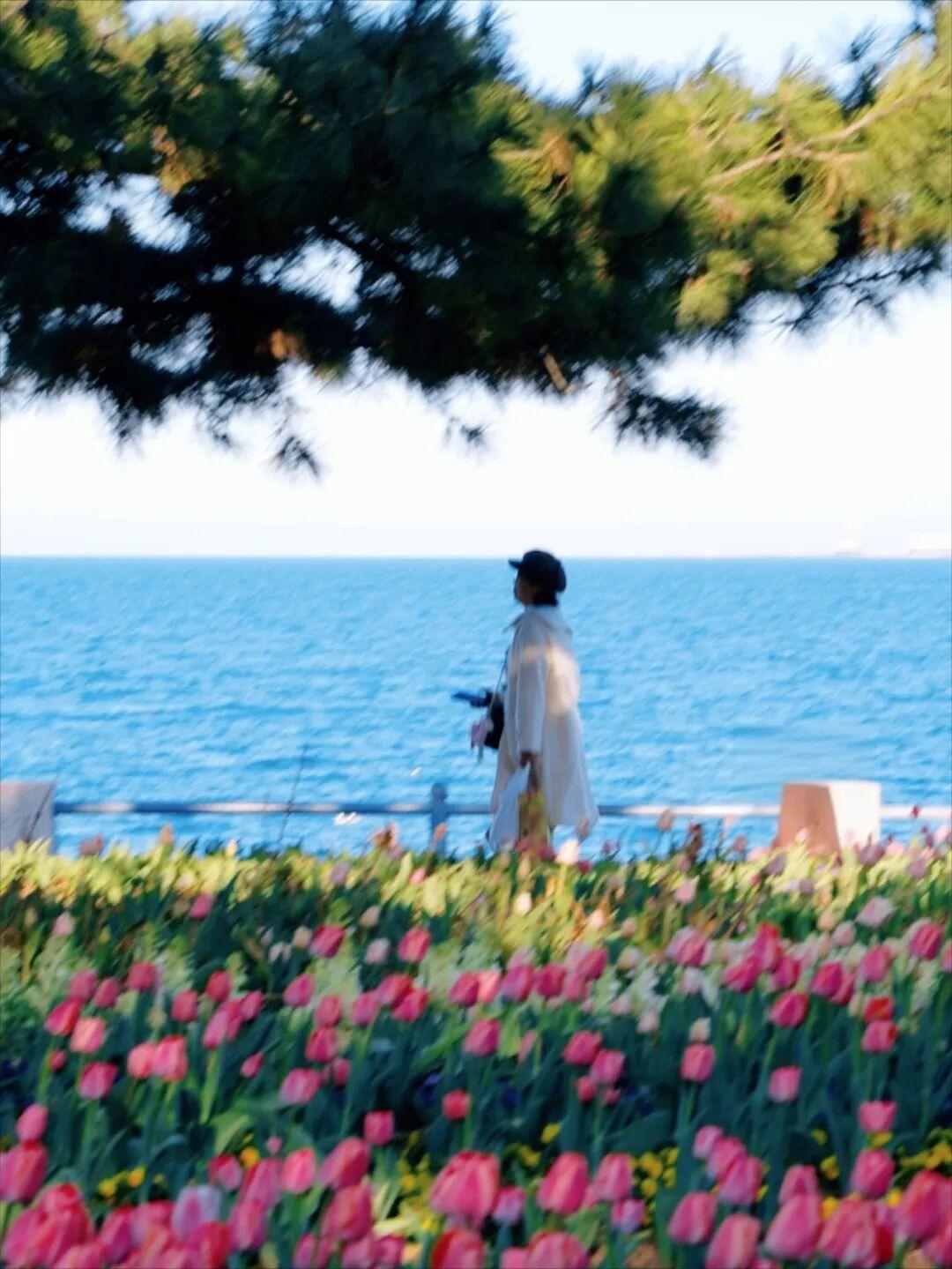 除了这两个核心点位,从海魂广场到大相框的沿海步道两侧,也有零星种植的郁金香,散步时随手就能拍到,沿途风景也很治愈,建议慢慢逛、慢慢拍。