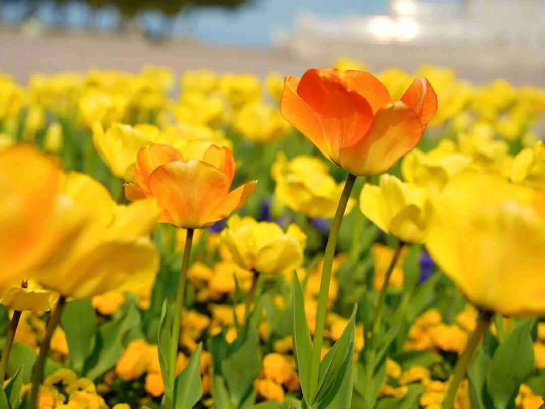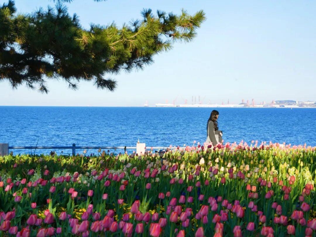傍晚16:00-18:00:夕阳西下,光线呈暖黄色,洒在郁金香和海面上,能拍到“夕阳+花海+大海”的绝美画面,建议提前1小时到达。