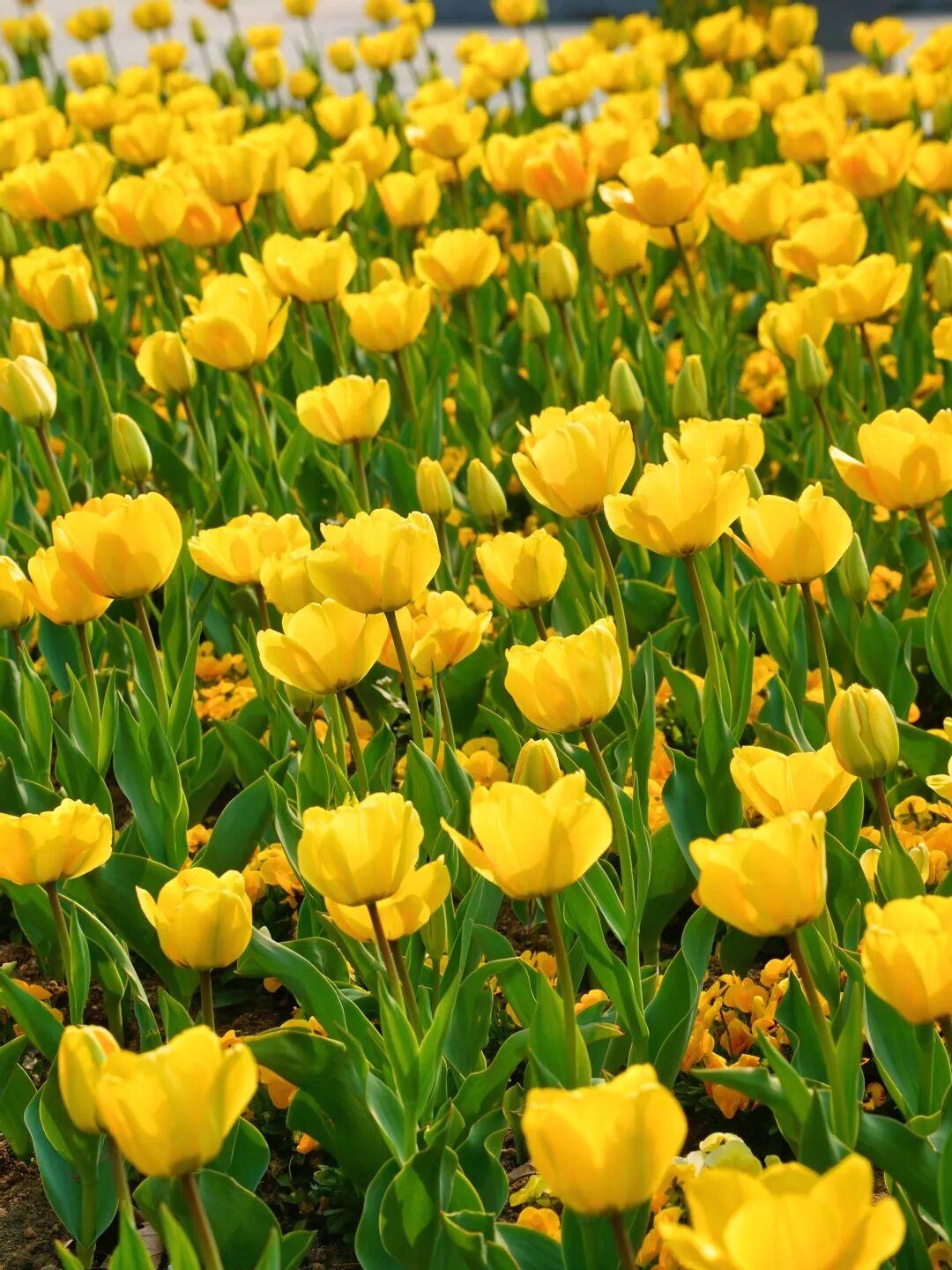 当前郁金香已进入盛花期,其中4月中旬左右花朵开得最饱满、颜色最鲜亮,也是全年观赏效果最佳的时段!预计花期可持续至5月。