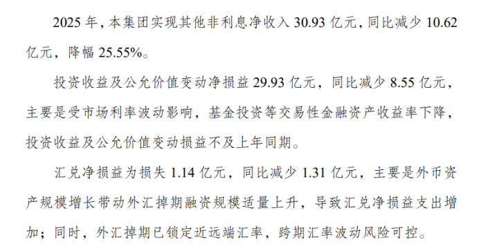 “对于重庆农商行而言,虽然2025年通过负债端的成本管控实现了利息净收入的增长,但非利息净收入的下滑也从侧面反映出包括债券自营在内的交易业务面临的压力。”中国城市发展研究院投资部副主任袁帅在接受媒体采访时表示。