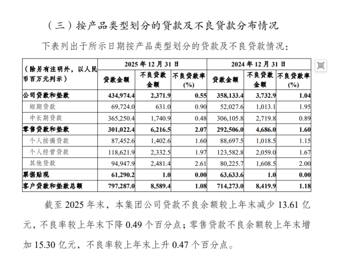 零售贷款不良余额增加15.3亿,零售贷款不良率上行47个基点